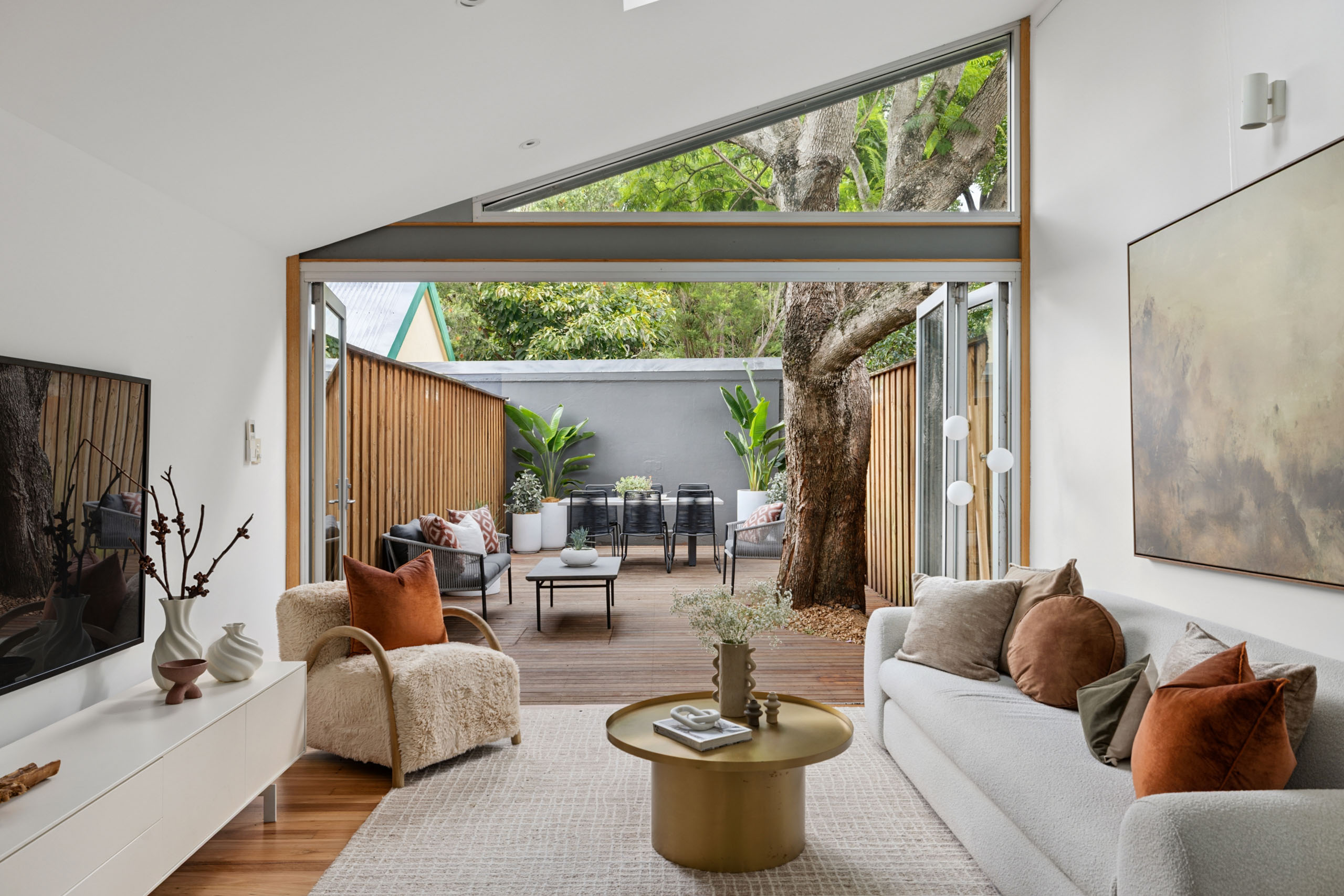 - North-facing timber sliding doors