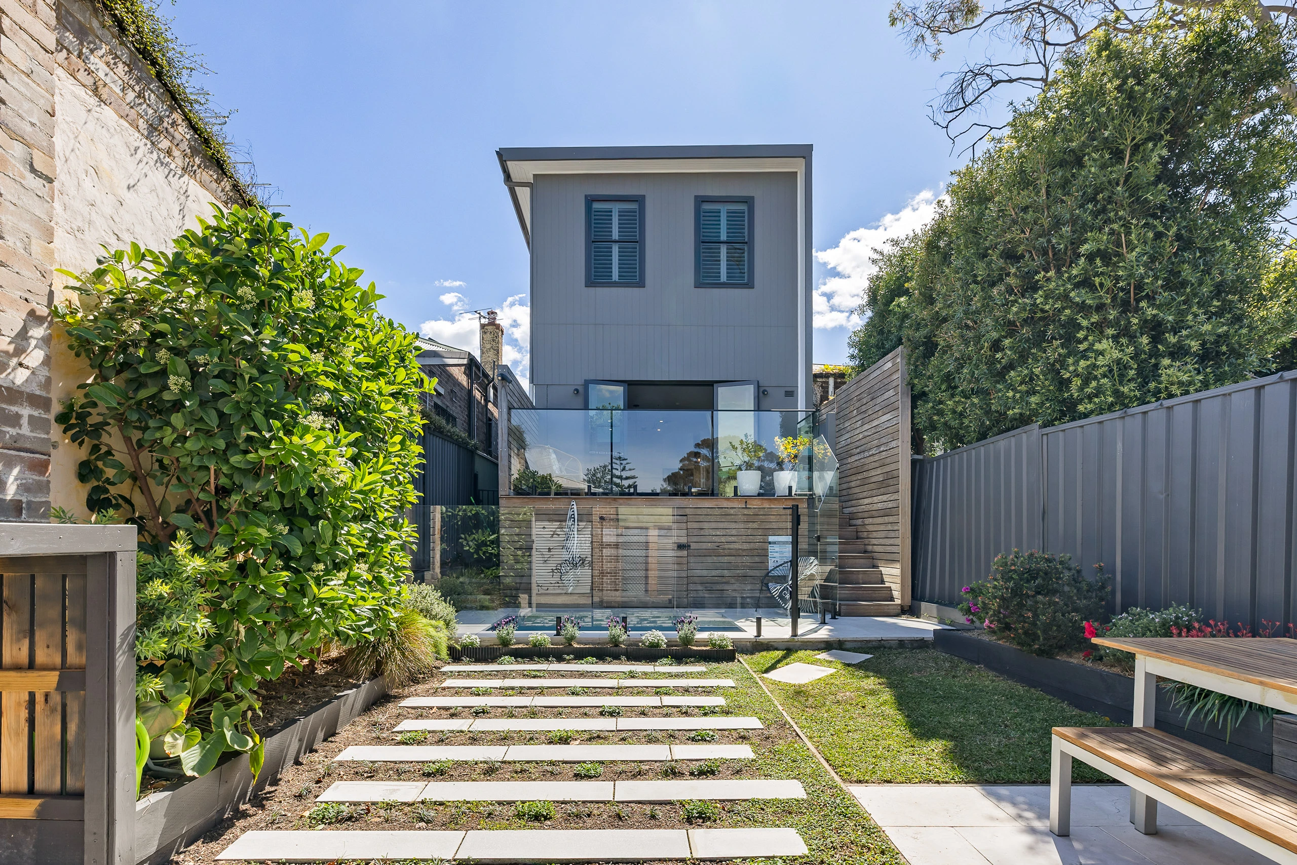 A charming semi with contemporary extensions, this home opens to a seamless indoor/outdoor setting with French doors to the deck and a swimming pool as the centrepiece. With private rear lane access via Salisbury Lane to the parking and courtyard garden, it balances period character with modern updates. European oak timber floors, decorative fireplaces, a stone kitchen, and light-filled interiors add warmth and refinement, while ducted air conditioning, ceiling fans, and plantation shutters provide comfort year-round. Set for entertaining and family living, it’s framed by leafy gardens and set in a desirable pocket close to trains, buses, Stanmore Village, Sydney University and sought-after schools.