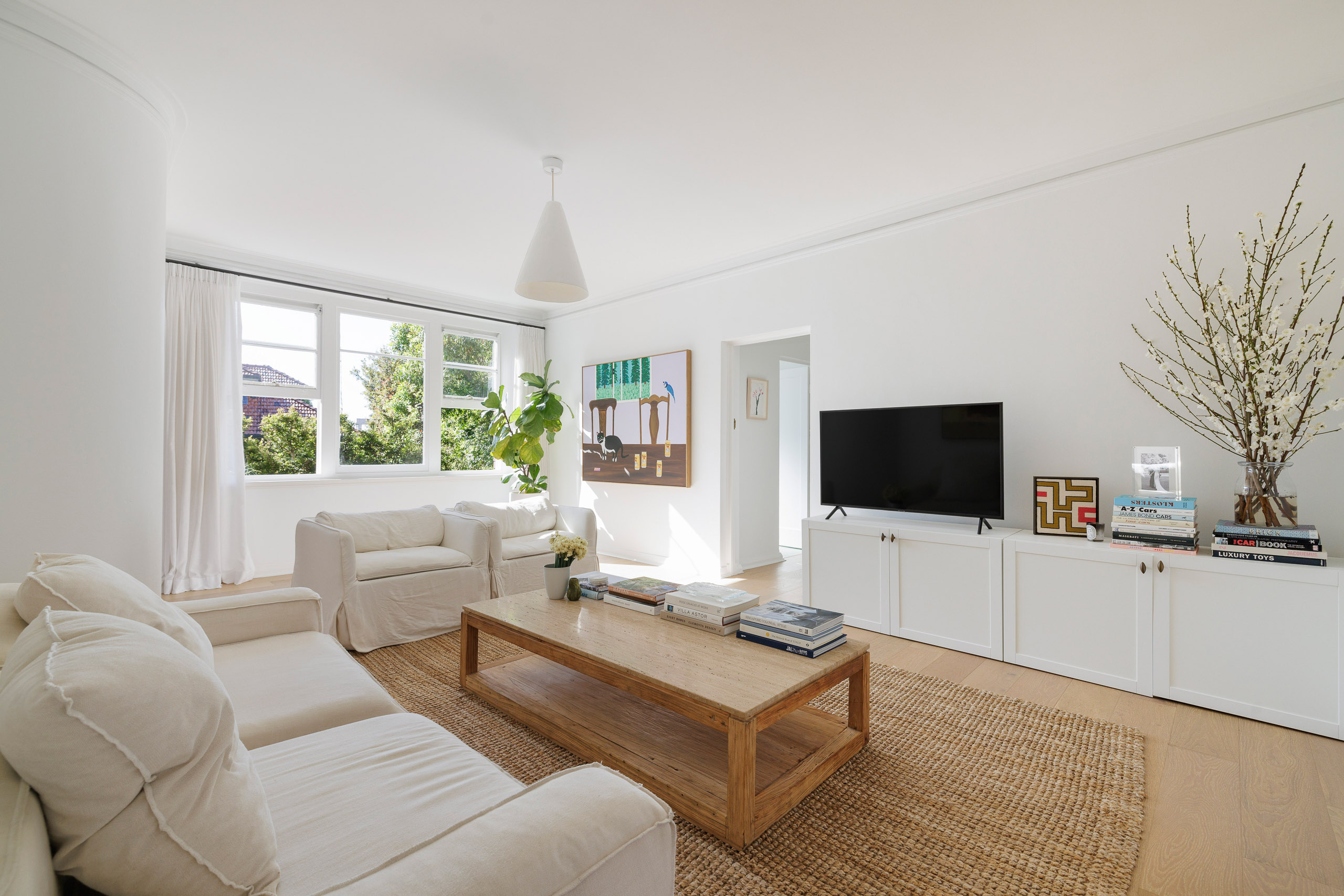 This elegant apartment is graced with house-like proportions (98sqm and 114sqm in total on title), and a rear-of-block position in the Art Deco landmark ‘Cranleigh’. Oversized character windows draw in abundant natural light, accentuating the beauty of the timeless all-white interiors and warm hardwood floors. The elevated vantage affords long district views stretching to the ocean and access to exclusive Eastern Suburbs village lifestyle, just around the corner from Bellevue Road village shops and transport and in easy reach of Double Bay, Bondi Beach, Rose Bay, Bondi Junction and Woollahra. Free Strata Report available: bw.com.au