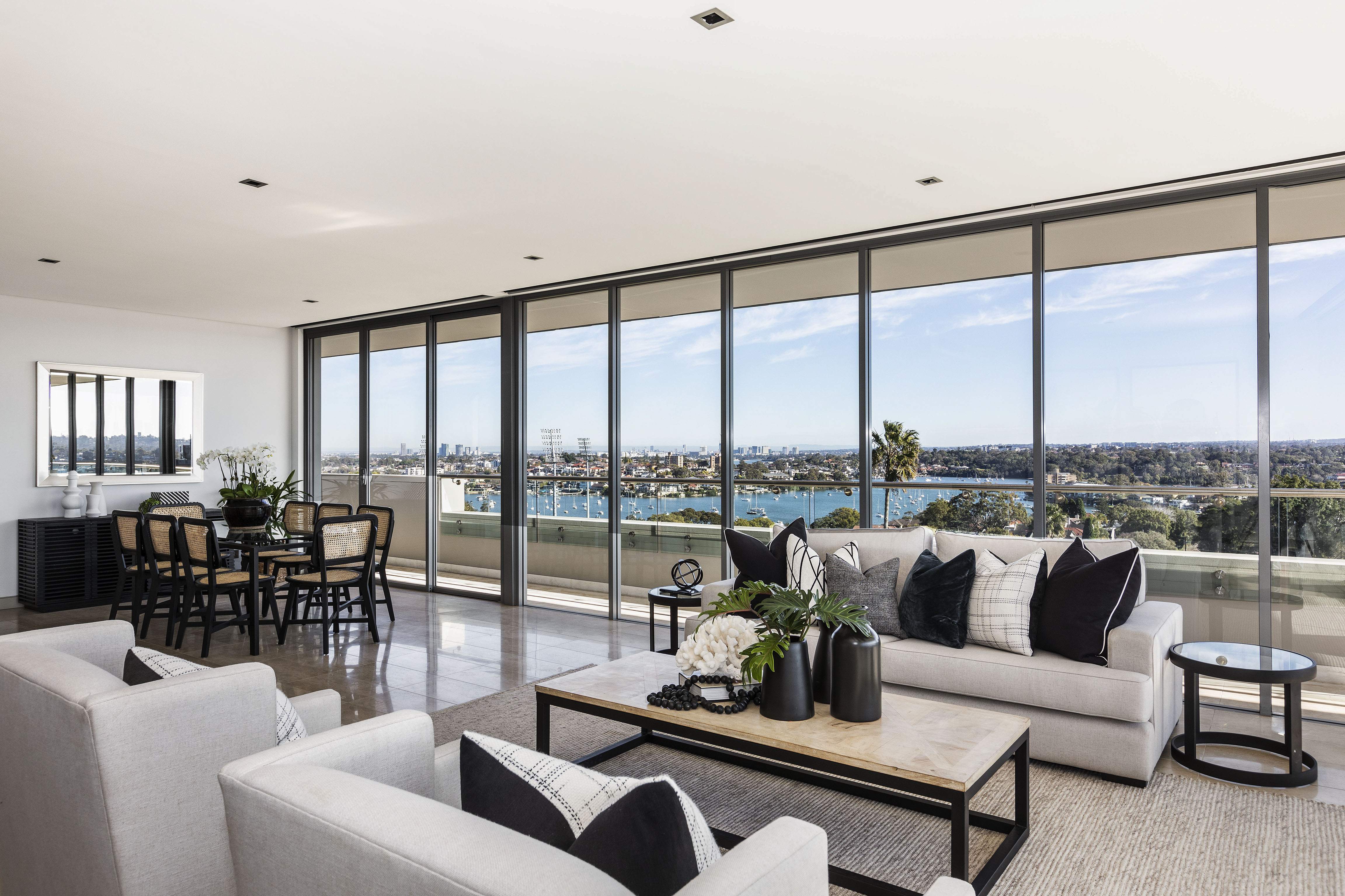 With some of the best outlooks in the area, this entertainer’s apartment has an idyllic NE-facing position and views across the water to the CBD, Harbour Bridge, and more.
