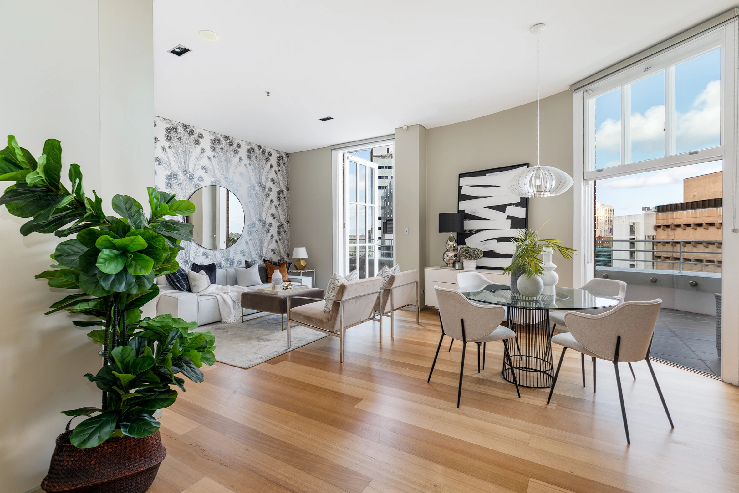 - Open-plan living spaces w/ city outlooks