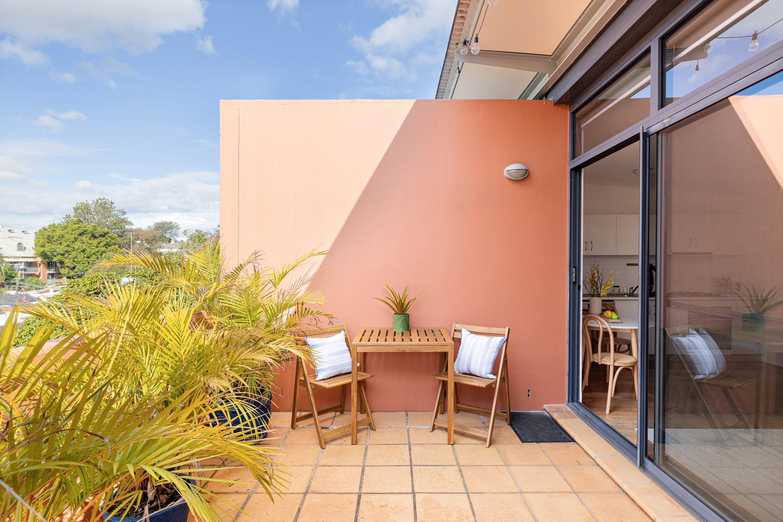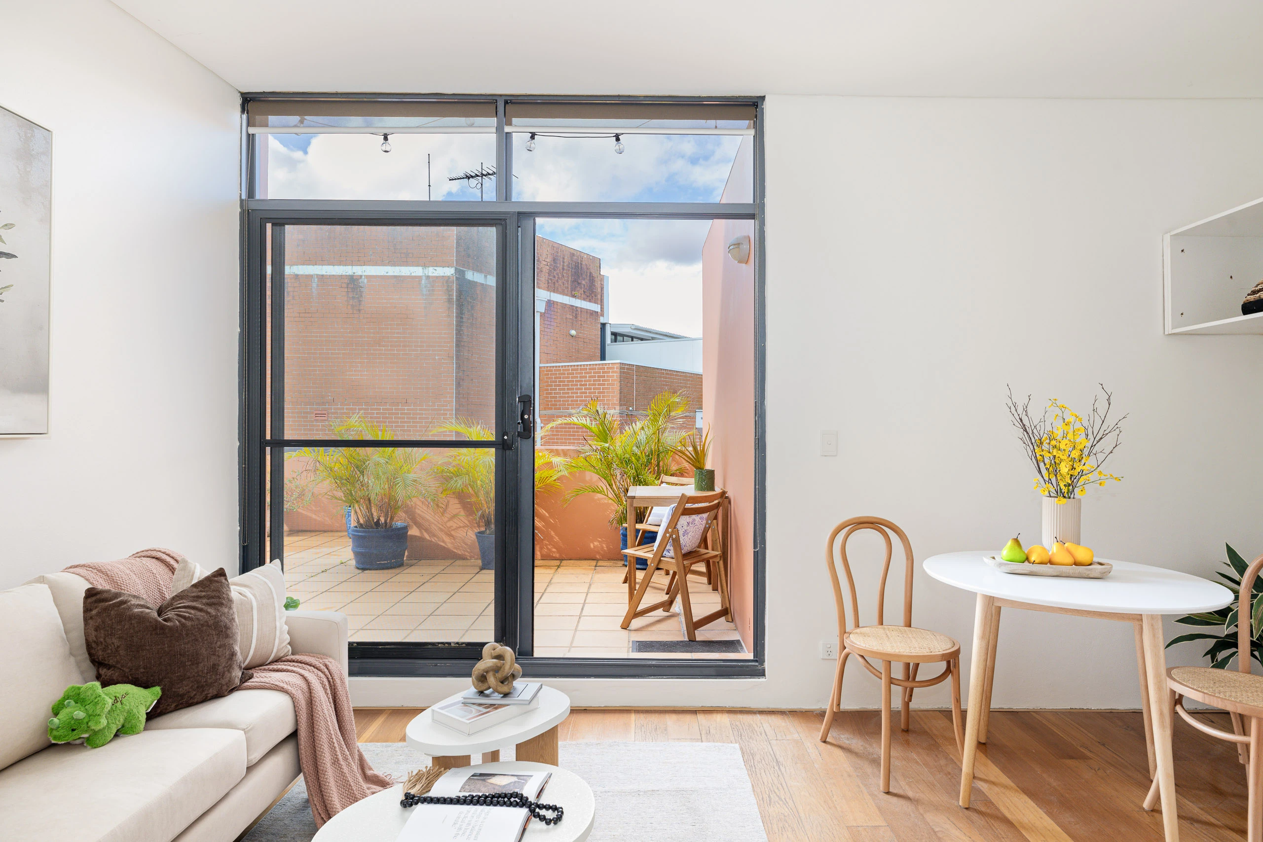 Graced by top-floor peace and views, this oversized one-bedroom apartment is located within the well-kept ‘Newtown Square’ security complex with its garden walkways and pocket parks. The split-level floorplan includes a downstairs bedroom wing with ensuite bathroom and private balcony. The main level opens to a large terrace that virtually doubles the living space and overlooks pleasant rooftop views. On the suburb’s north-most edge, it’s a short stroll to King Street, Camperdown Memorial Rest Park, RPA Hospital, Sydney University and city transport.