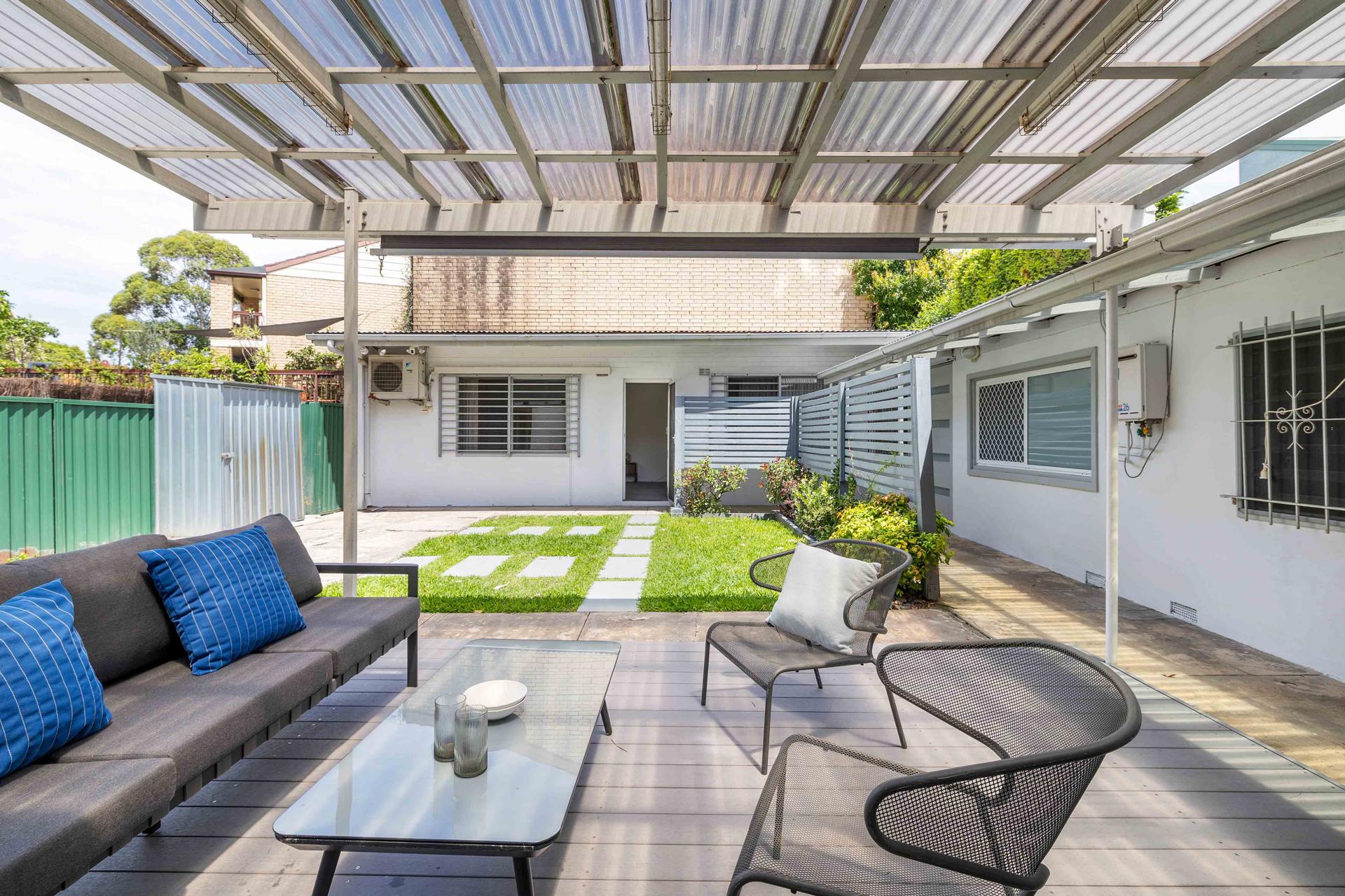 - Covered entertaining space, level lawns