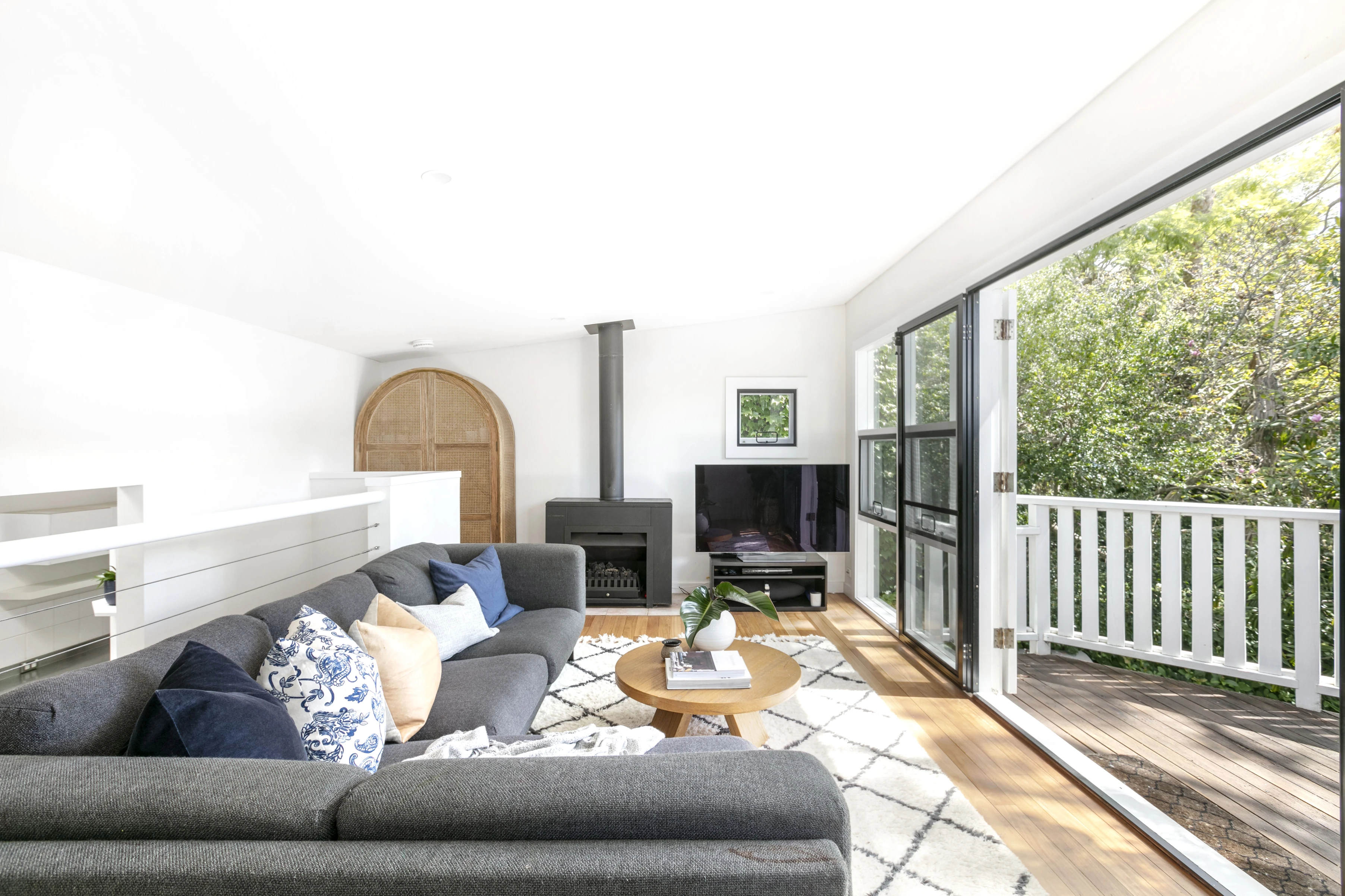 - Elevated living area spills out to sun deck