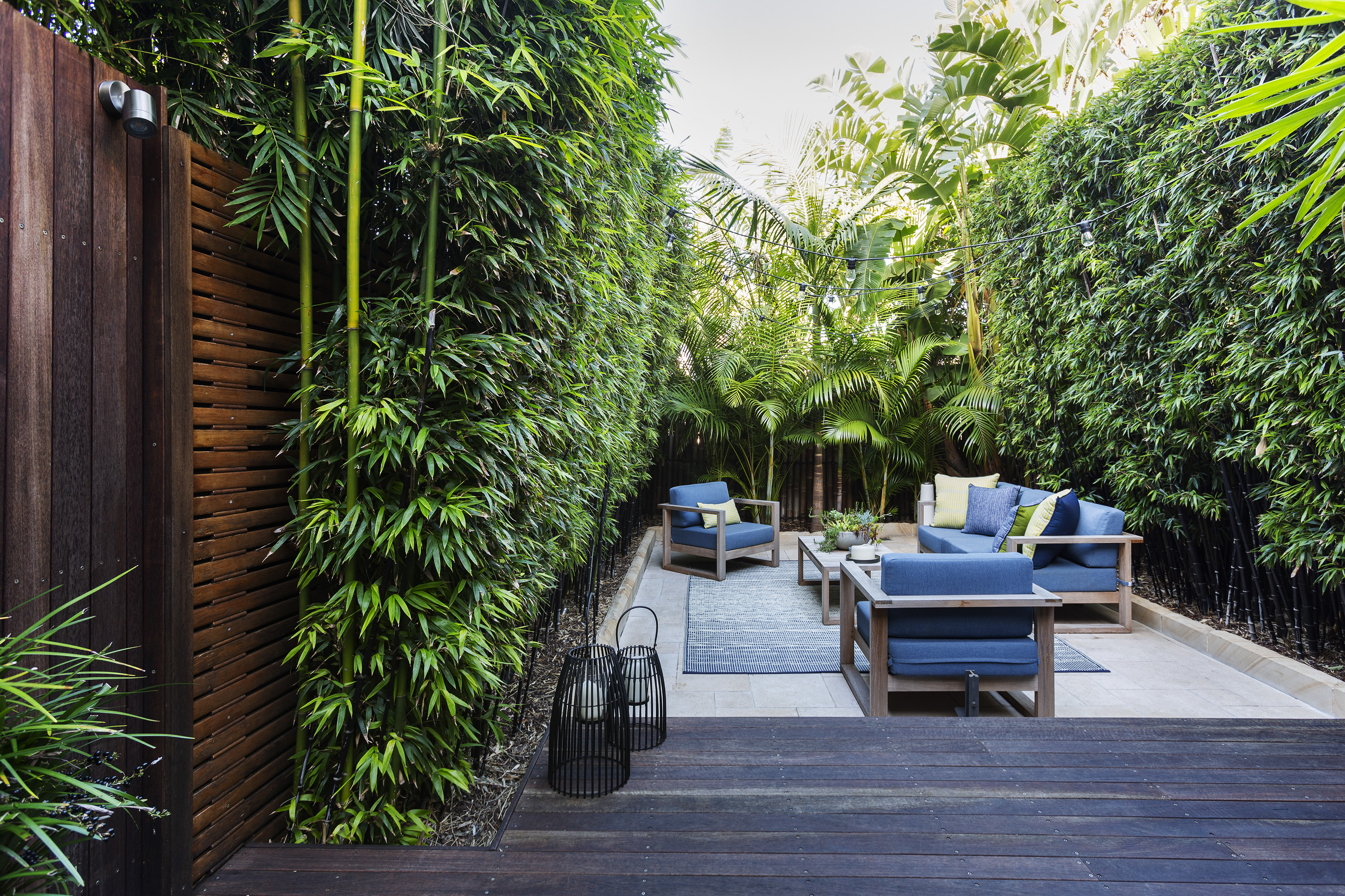- Bamboo-fringed courtyard entertaining area