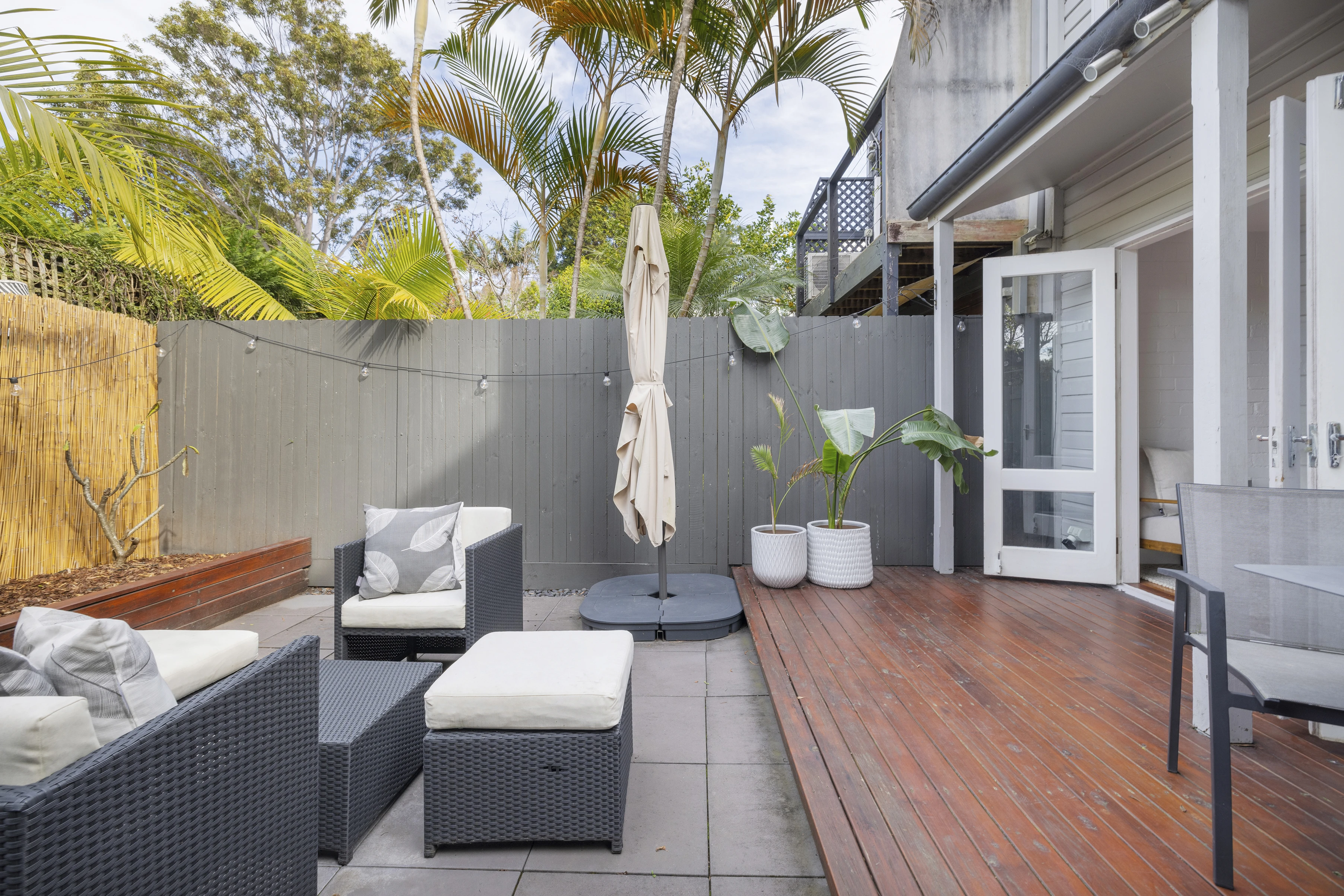 - Decking, lush garden, side lane access