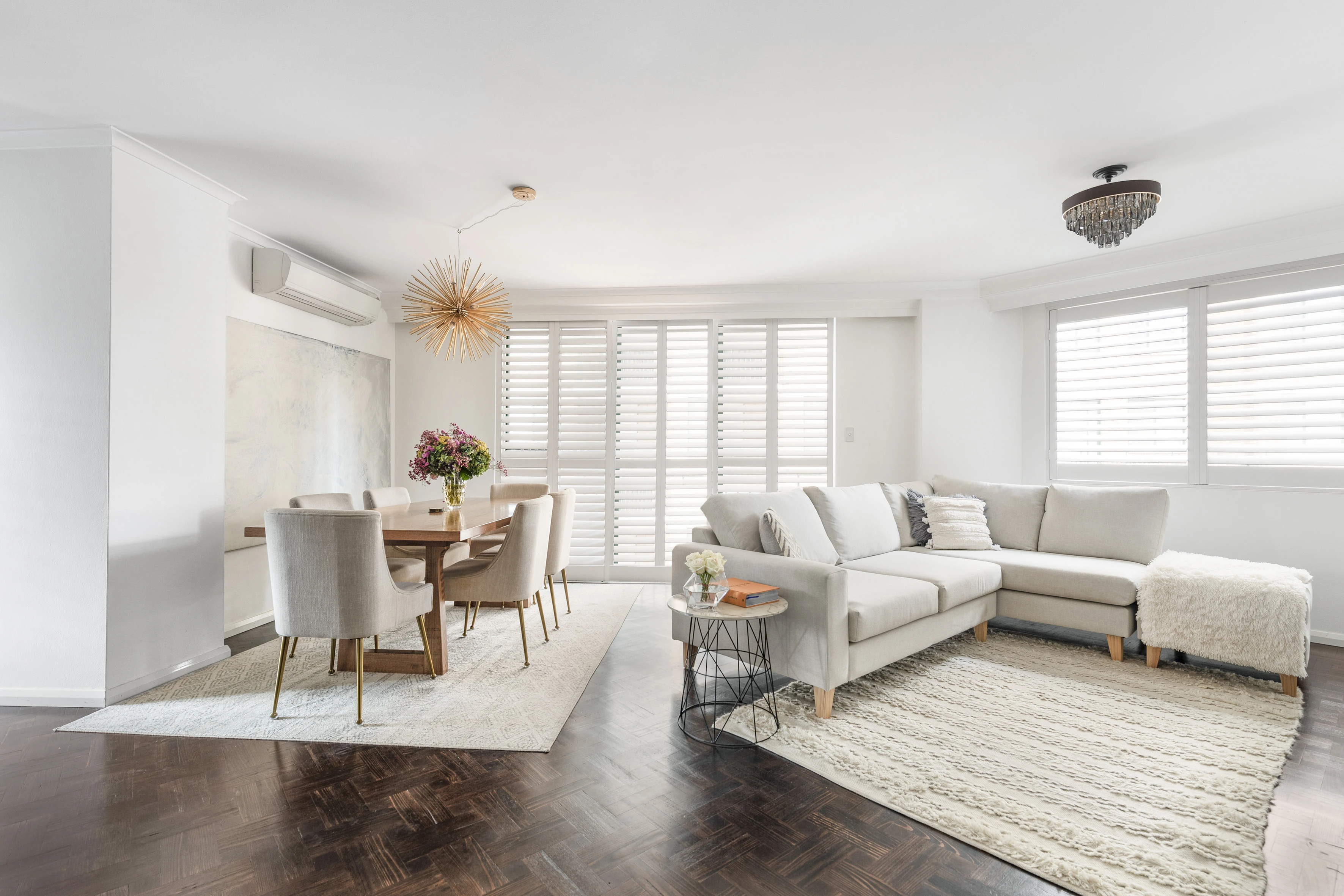 - Parquetry hardwood floors, split air con