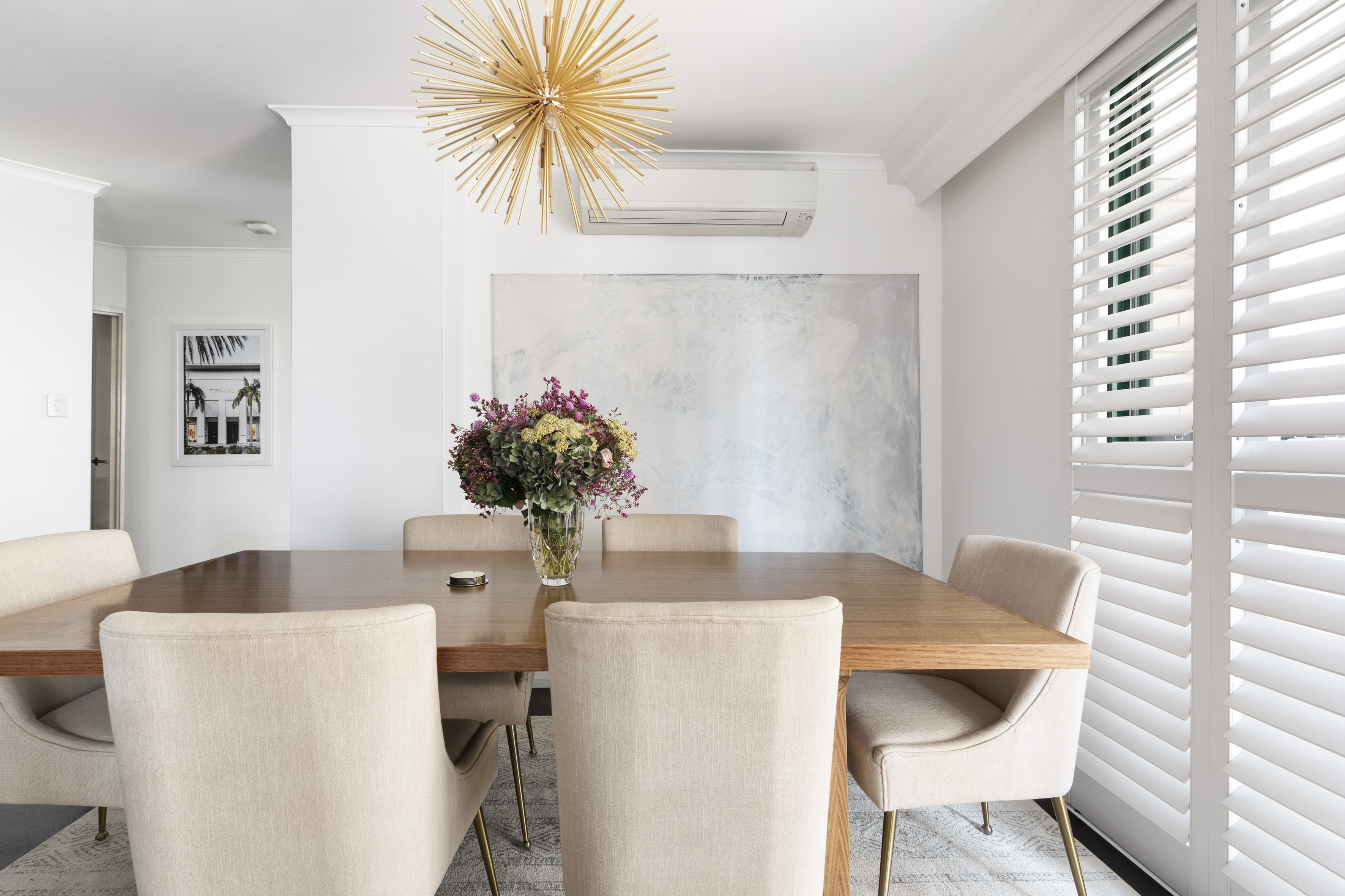 - Open living + balcony, plantation shutters