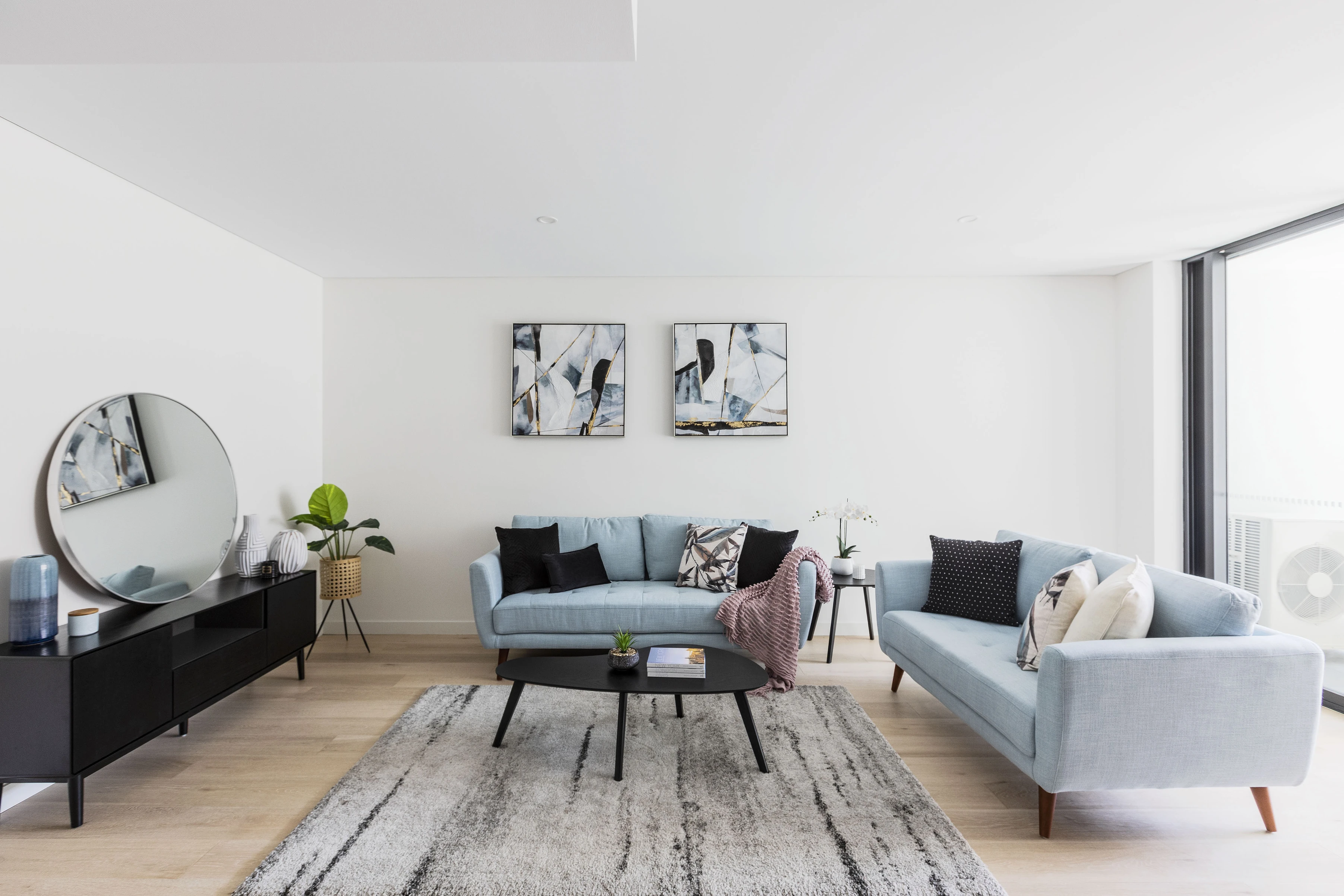 - Full laundry, marble-detailed bathrooms