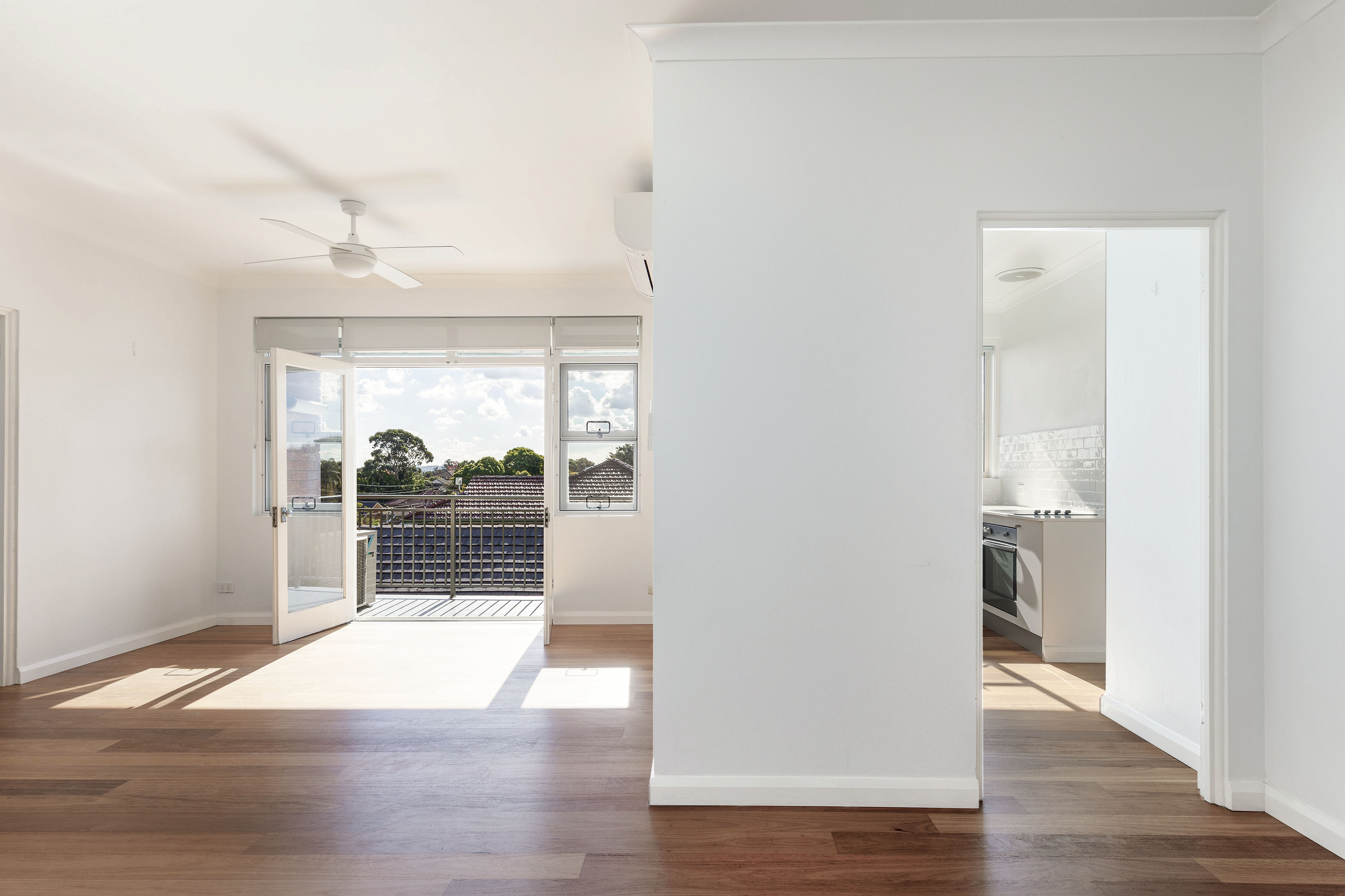 On the top floor this apartment has plenty of natural light and a private rooftop/treetop position. With 180-degree outlooks from the balcony, you can see all the way to the Blue Mountains.