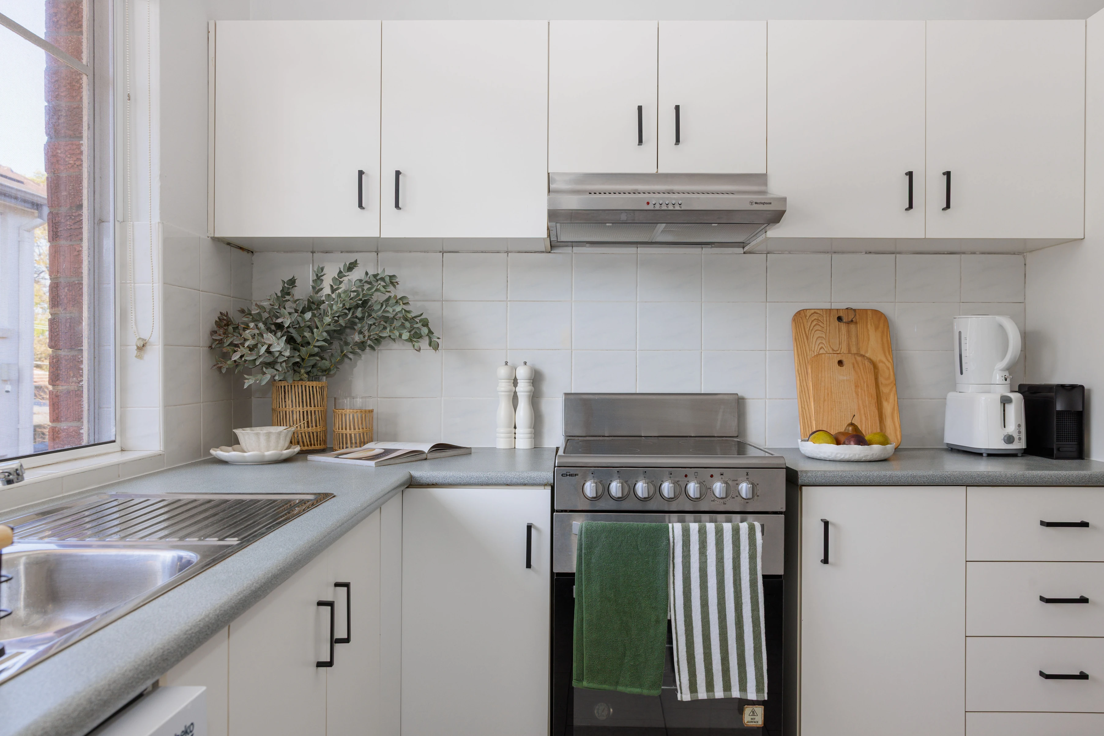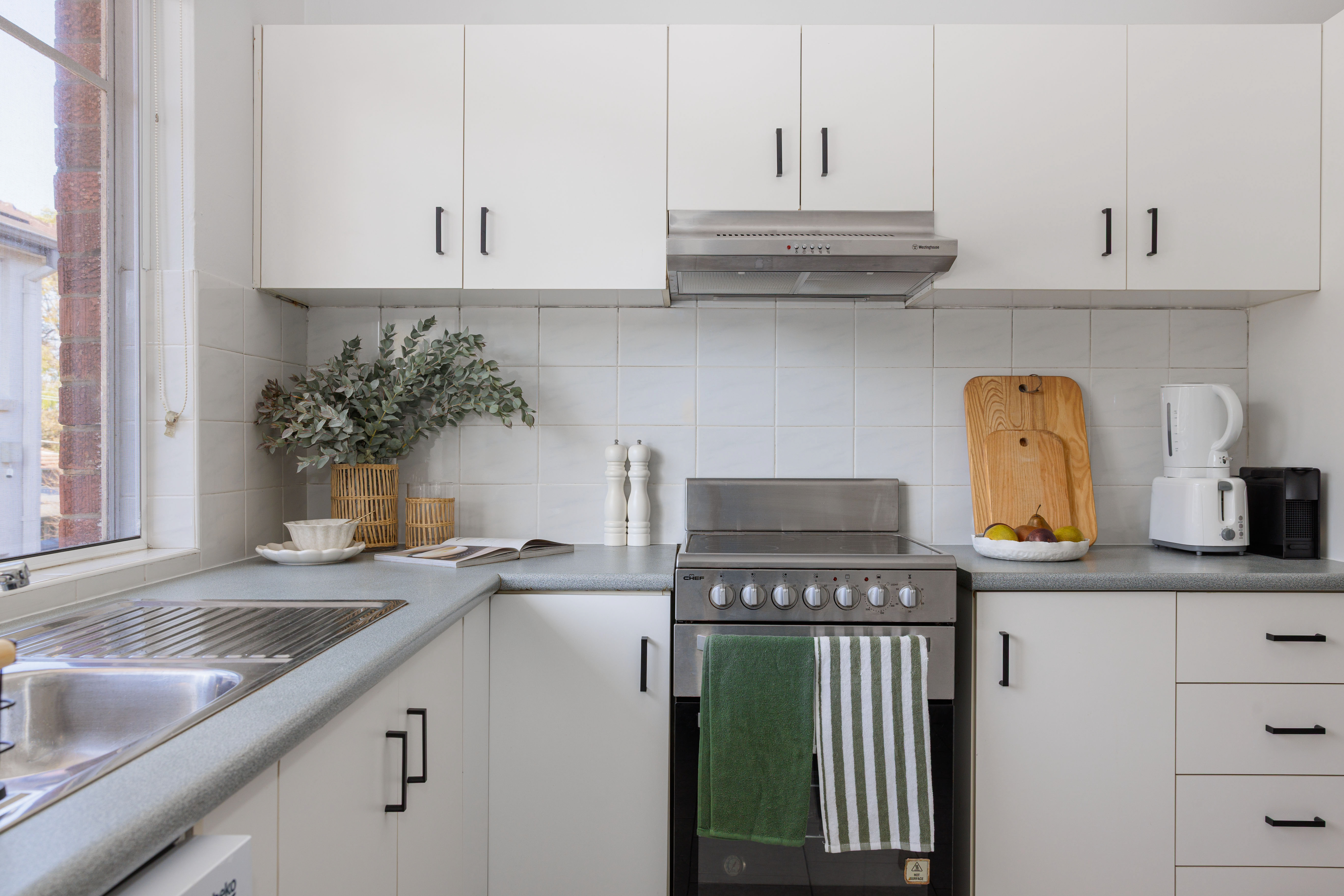- Modern eat-in kitchen & integrated laundry