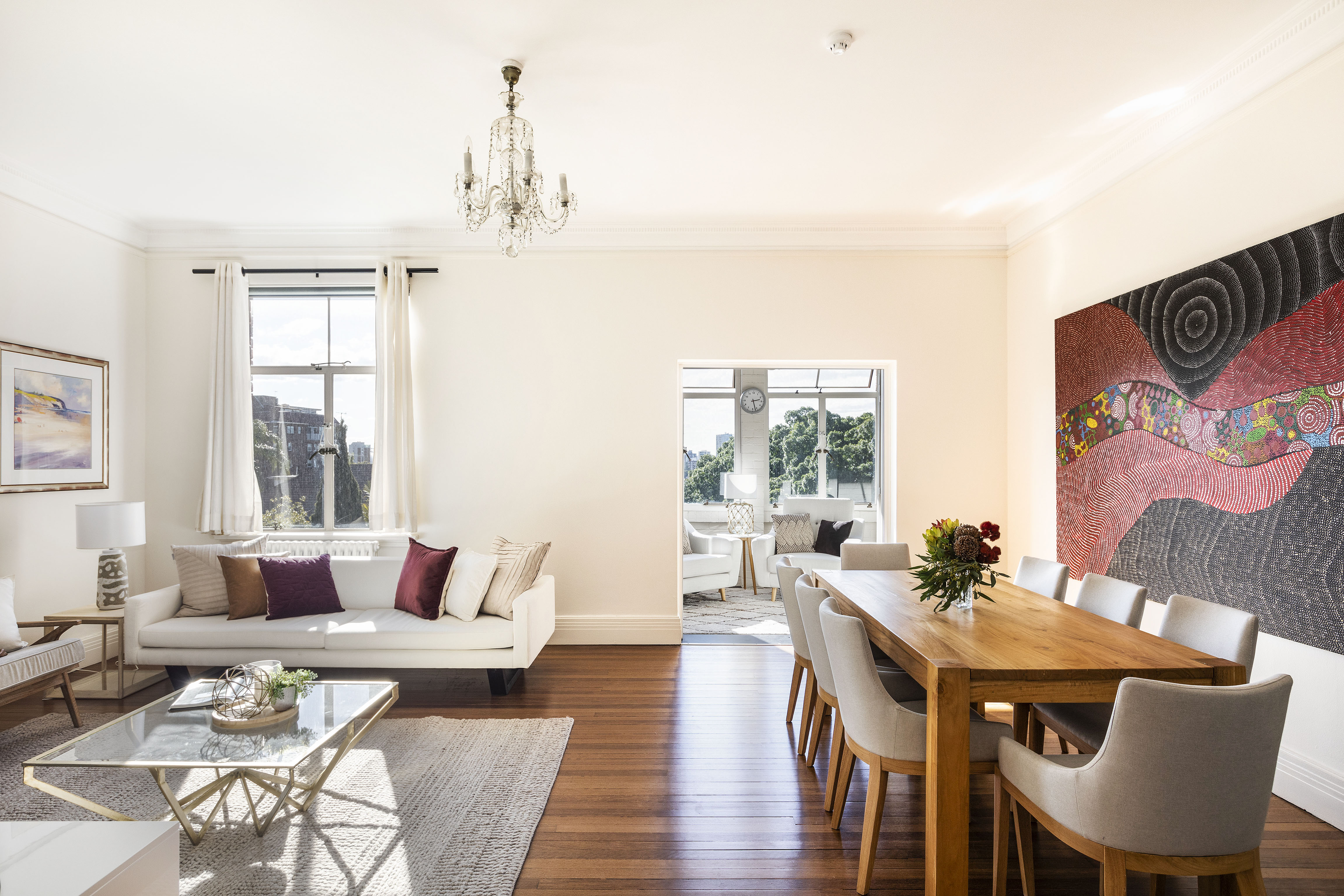 Set in one of Sydney's finest Art Deco landmarks, ‘Hillside’, this grandly scaled, three-bedroom apartment layers preserved character with prestige, including a Boffi kitchen and Harbour Bridge views.