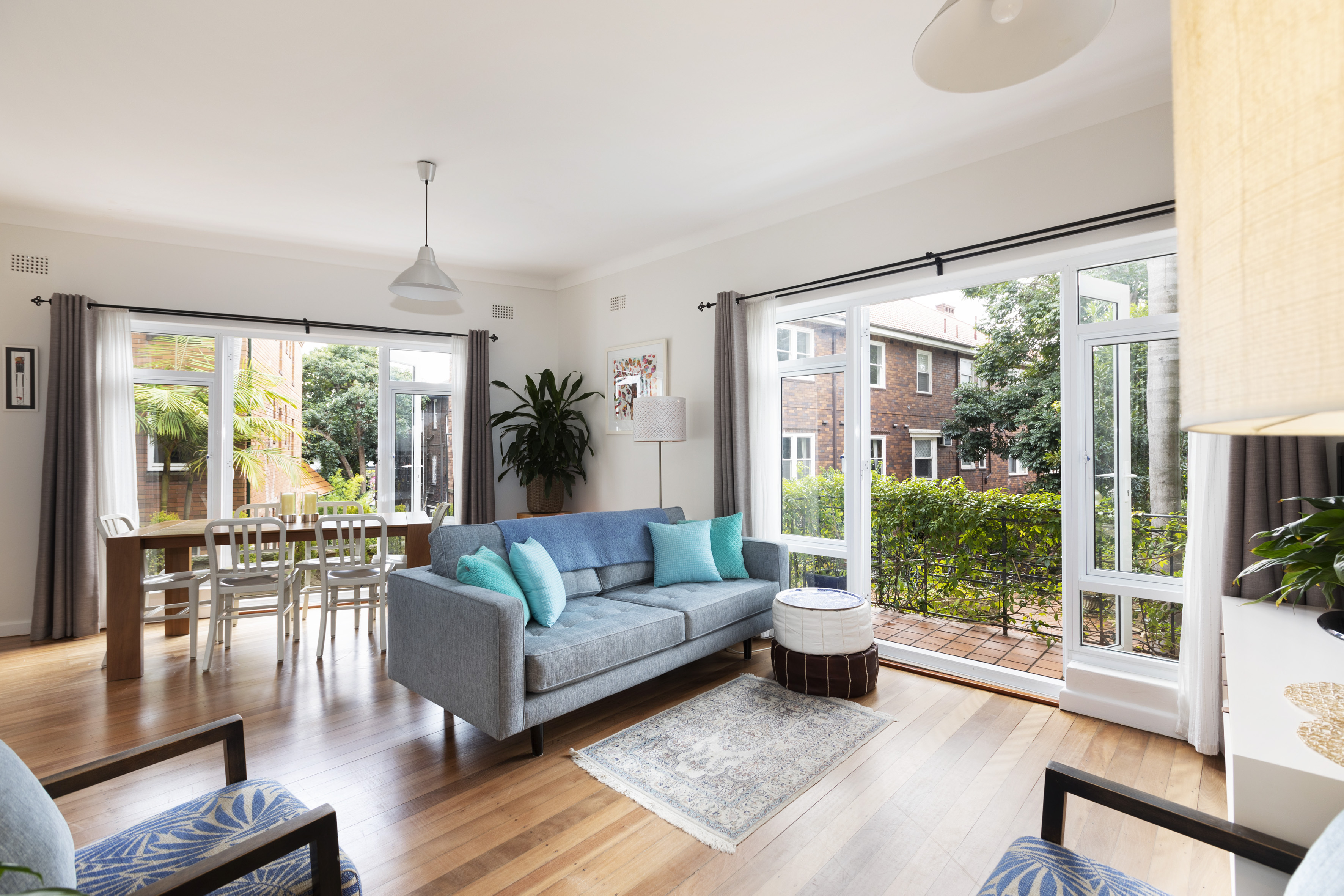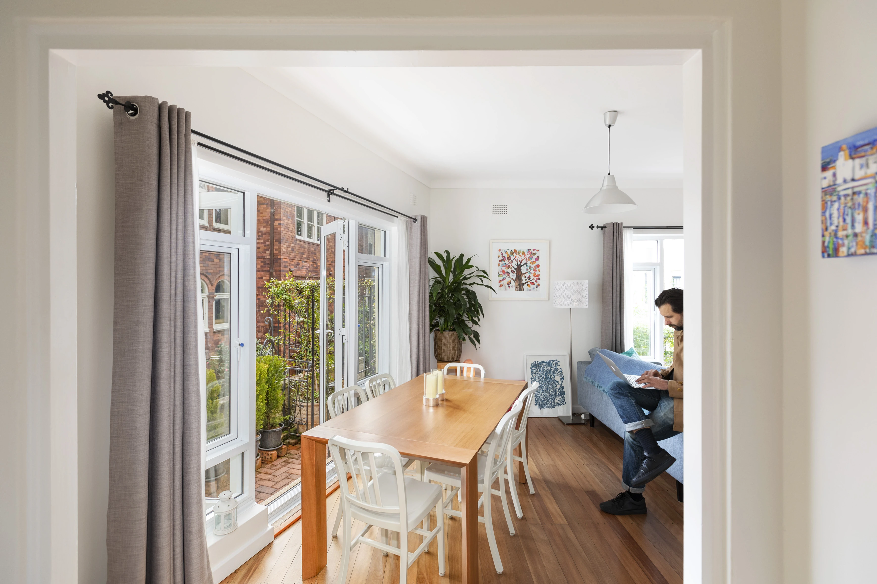 In a tucked-away position in the heart of the village, this garden apartment is wrapped in outdoor space for an alfresco feel. Multiple french doors open up to create a flowing, breathing residence.