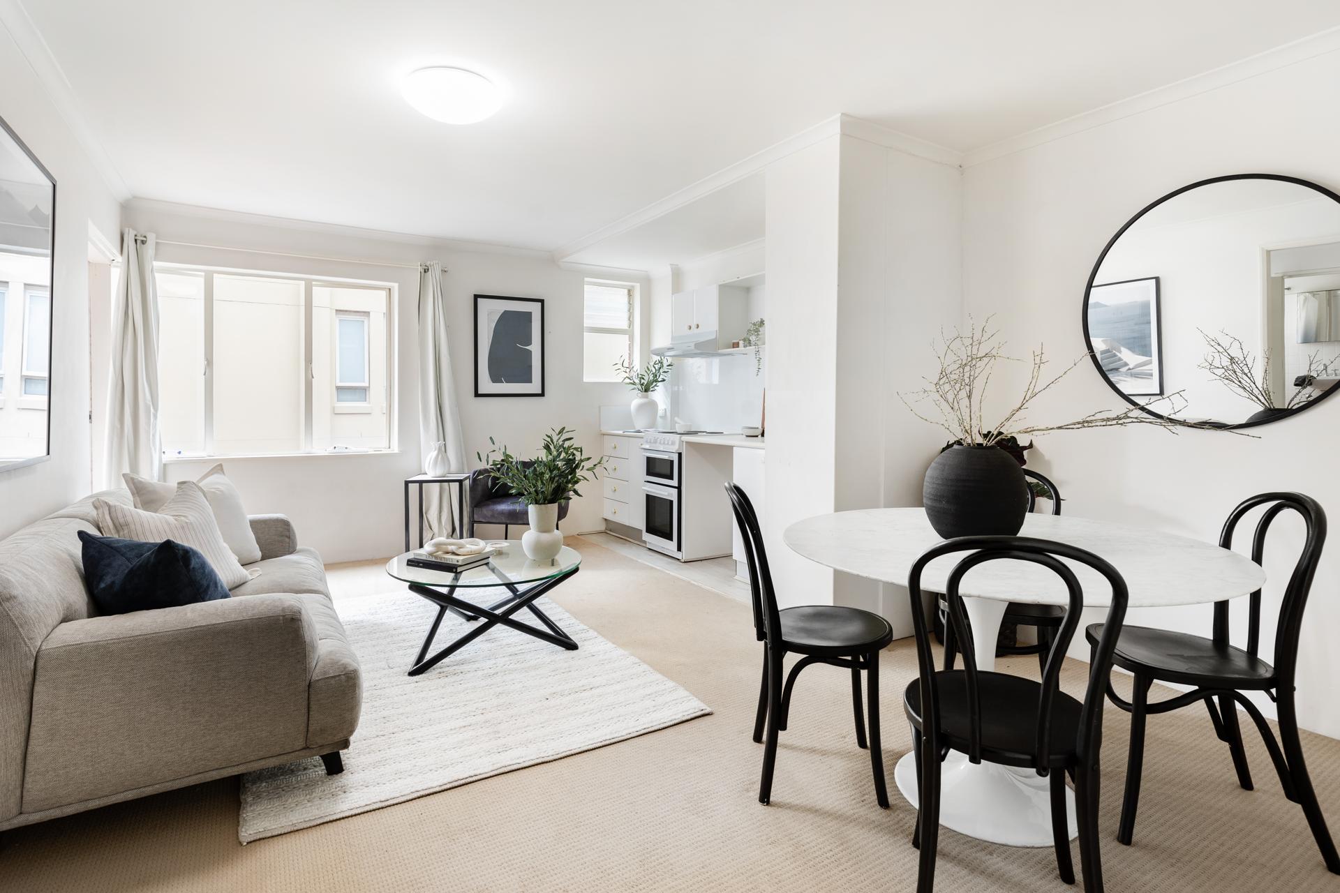 A perfect north aspect, a secure car space and a sunny balcony with easterly harbour view over boat-filled Elizabeth Bay to Darling Point and Rose Bay are winning hallmarks of this one-bedroom