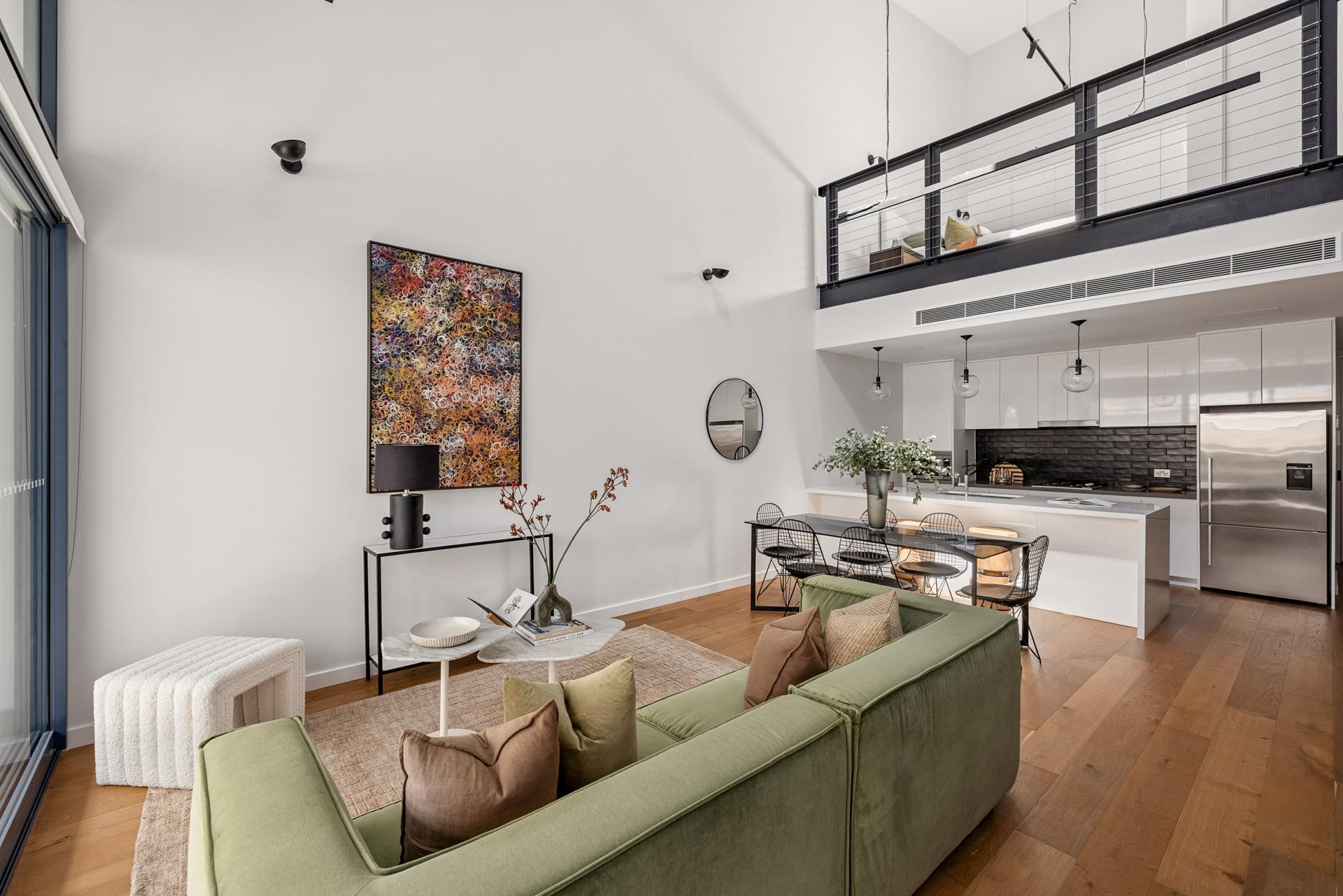 Soaring double-height ceilings and authentic industrial character underpin this warehouse residence in ‘The Riley’, a boutique collection of 22 apartments in the converted Ford building. An Inner Sydney landmark since 1938, the building has been reimagined to celebrate the individual character and industrial heritage of each apartment. This residence is distinguished by its loggia-style terrace and elevated position on level seven. The split-level design includes a classic loft-style bedroom and adjacent bathroom. The open living space integrates a house-sized kitchen with oversized stone island, plus ample room for distinct living and dining zones. An exceptional inner-city offering close to the CBD fringe flanked by the harbour, Domain, Hyde Park and so many Sydney attractions.