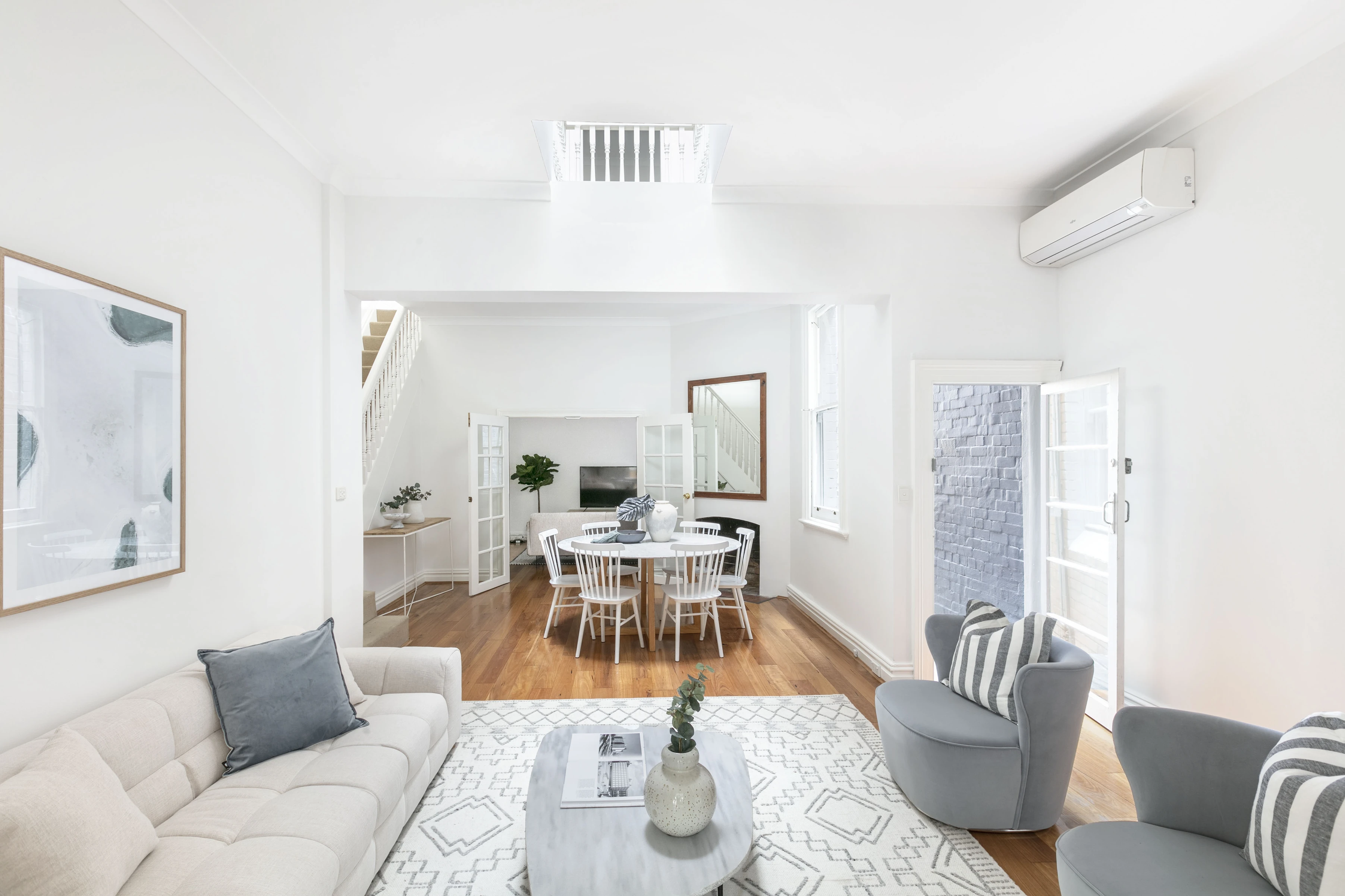 - Skylit open living w/ wood floors, A/C