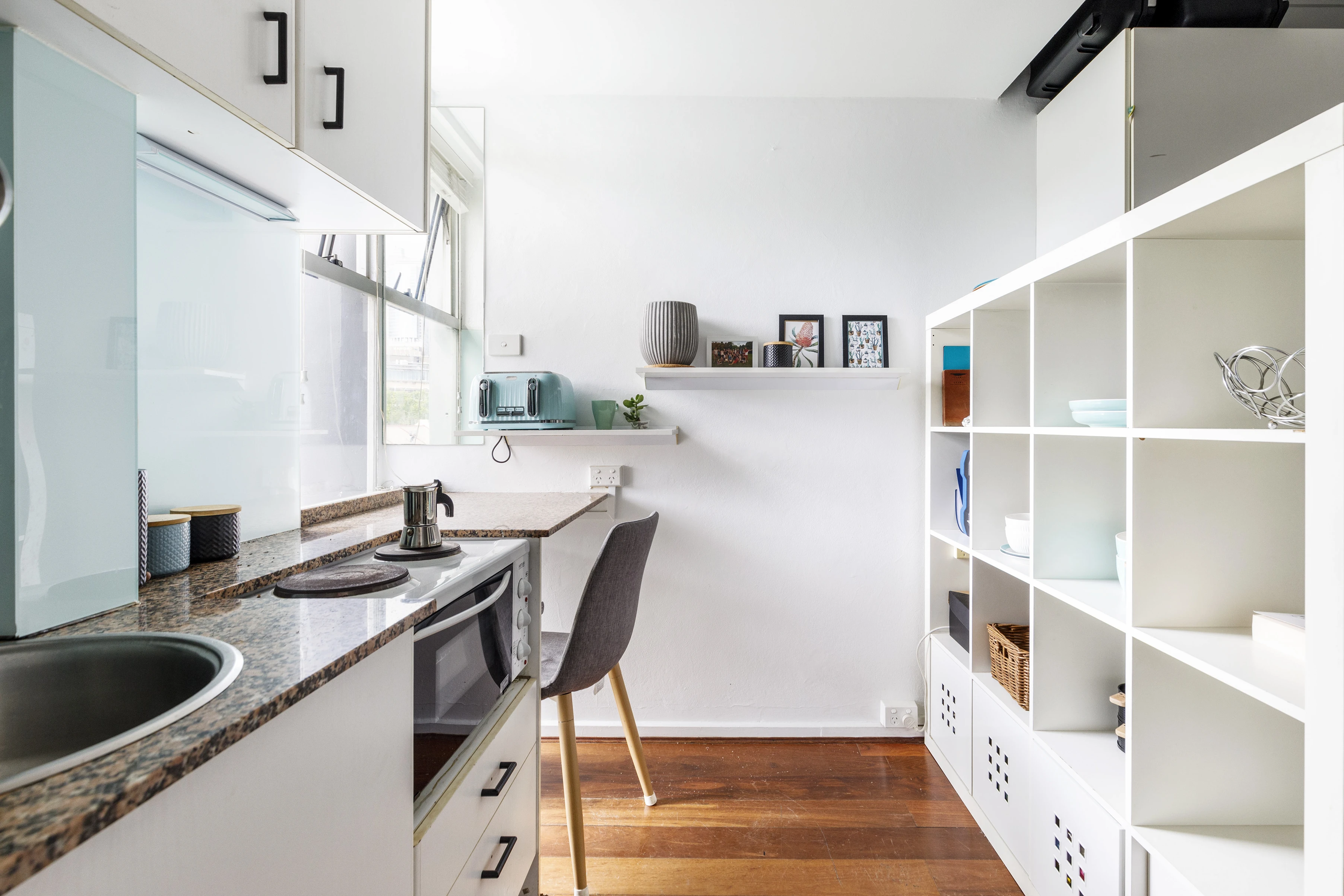 A studio with parking, this apartment is the ultimate convenience right on the edge of the city and harbour. So close to the Art Gallery and Botanic Gardens, with some of Sydney's best wharf-side dining on your doorstep.