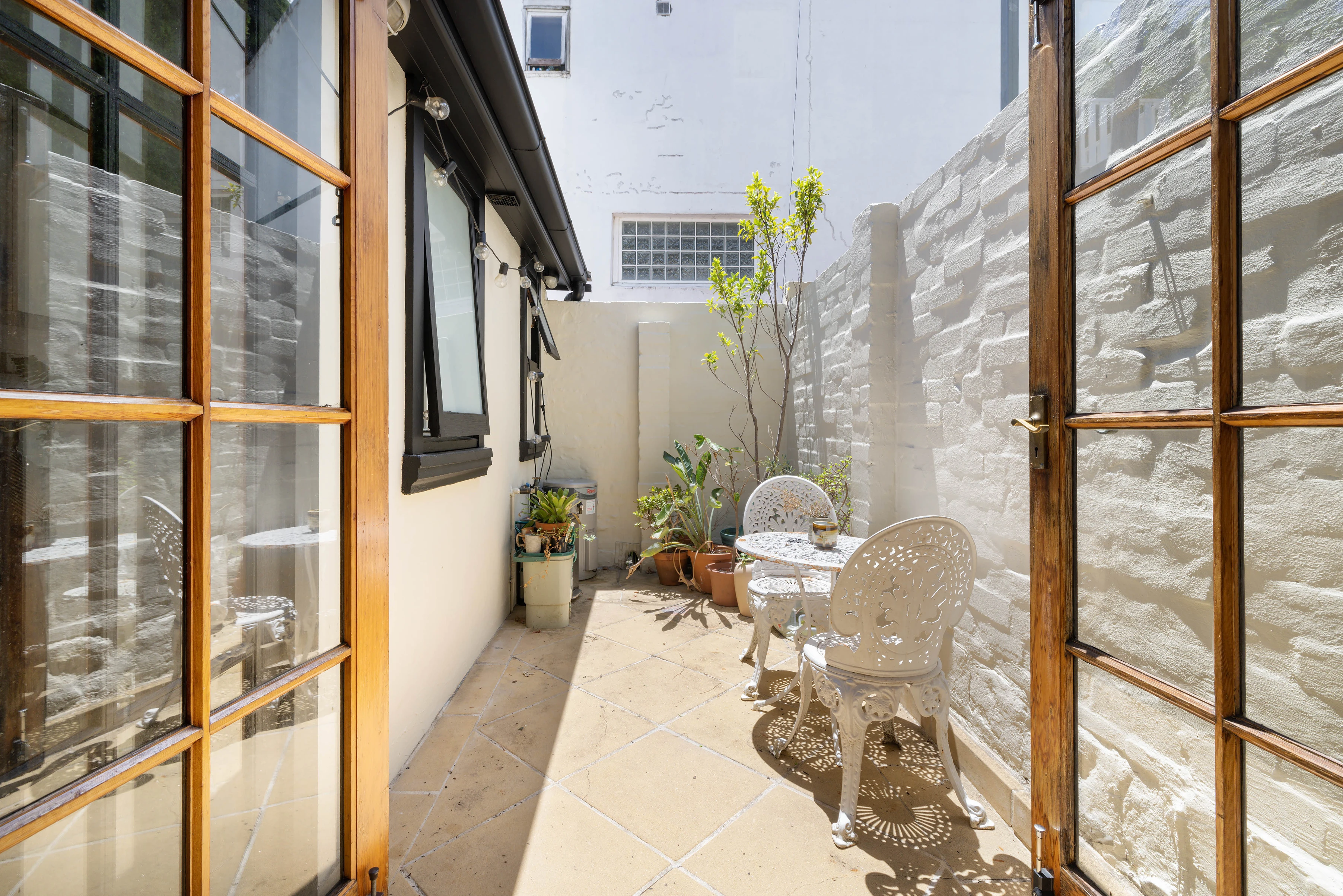 - French doors to a N-facing c/yard