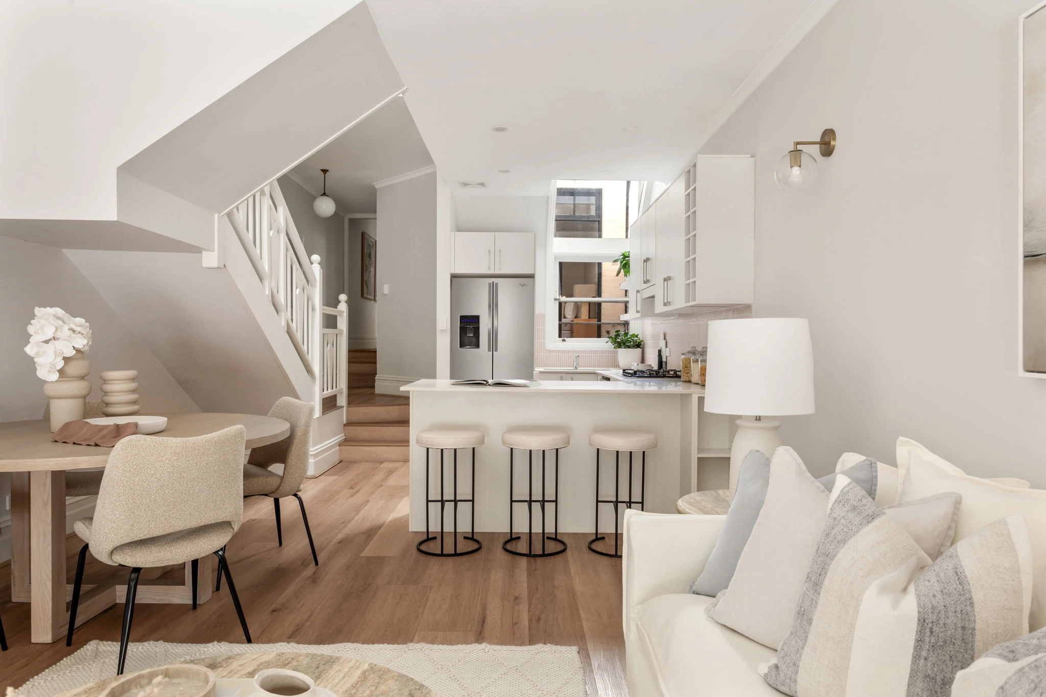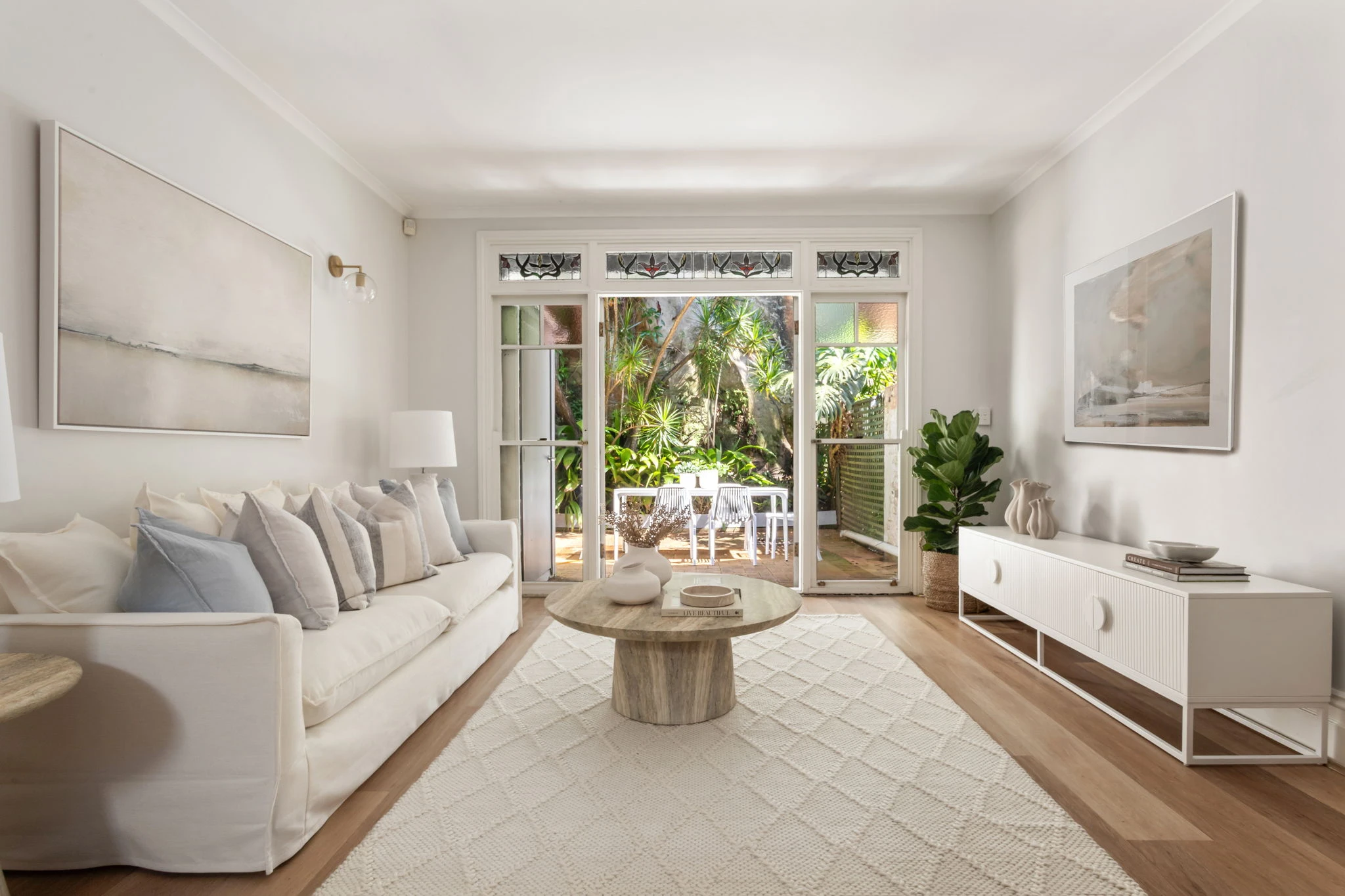 In a tightly-held neighbourhood pocket within a stroll of Five Ways, this charming terrace combines timeless elegance with contemporary additions and an effortless indoor/outdoor flow. Tastefully updated while retaining its original period appeal, it features a superb dual-level layout that's been cleverly renovated to make the most of the space and natural light. A sleek stone gas kitchen serves as the social heart of the home, while open plan living/dining areas feature French doors retracting to an ultra-private sun bathed courtyard in lush tropical garden surrounds. With potential to further extend, it is placed a stroll to Trumper Park, Edgecliff Station and Eastpoint Shopping Centre (STCA).