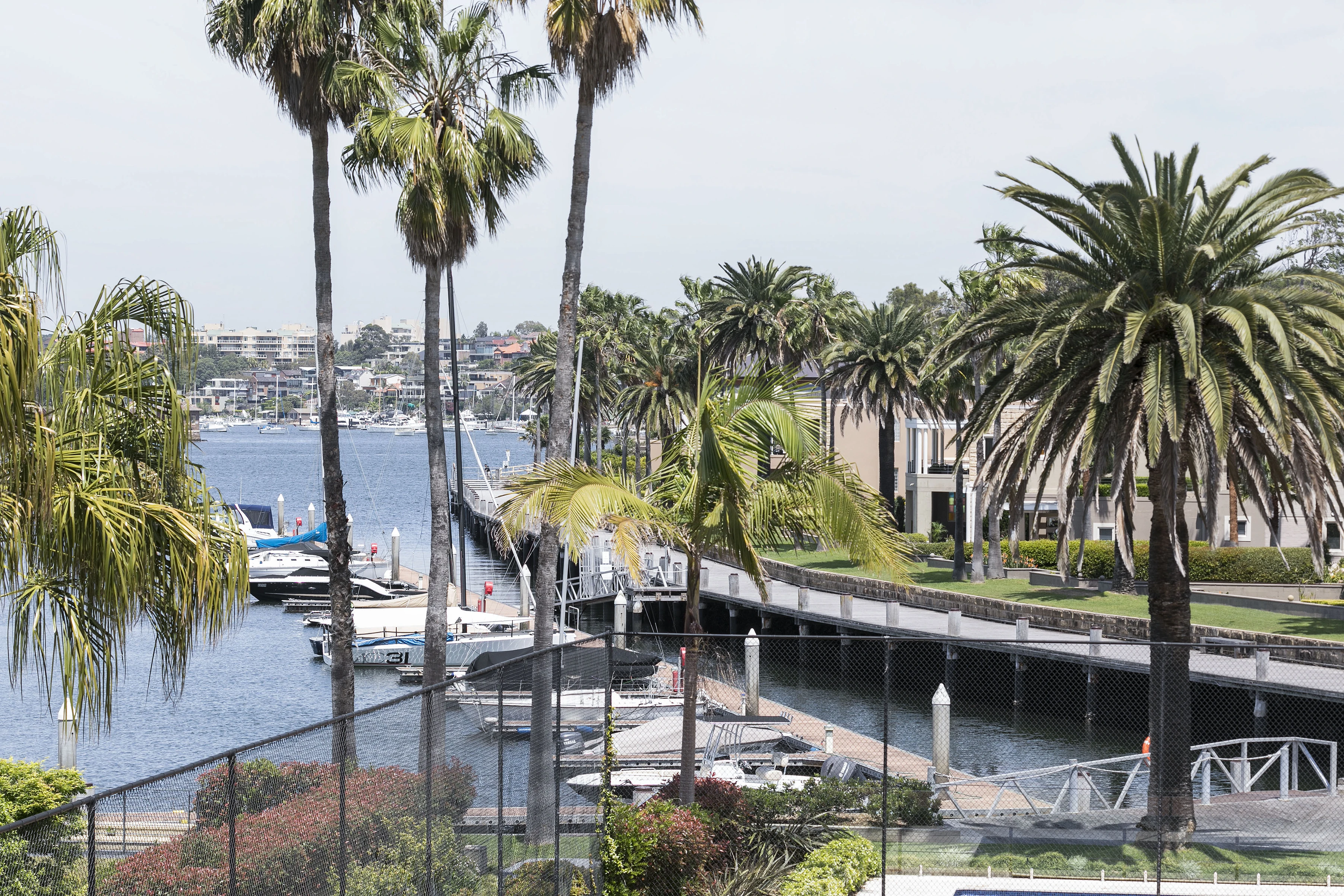 - Views over pool, tennis court to marina