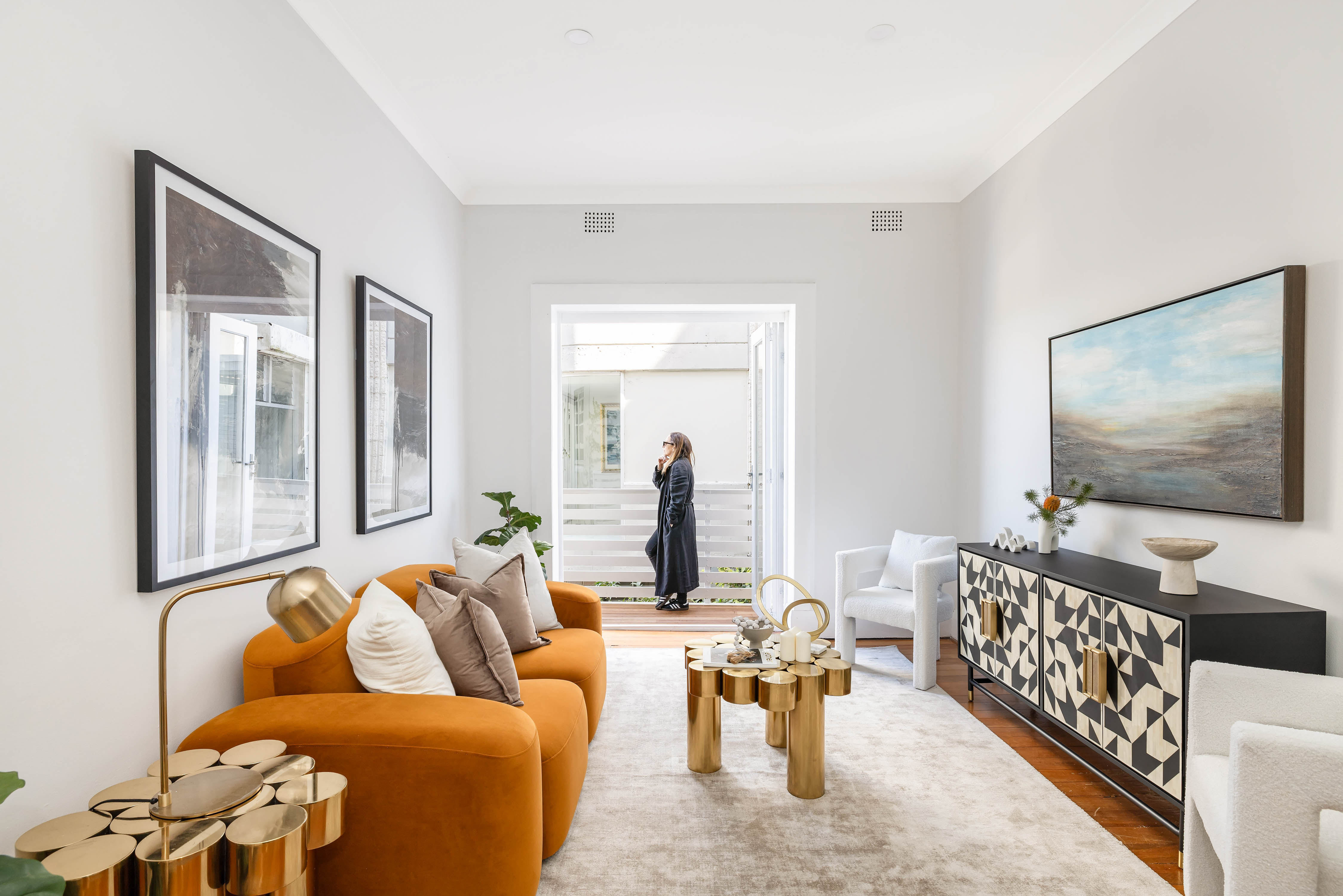 - High ceilings, polished floors, period detail