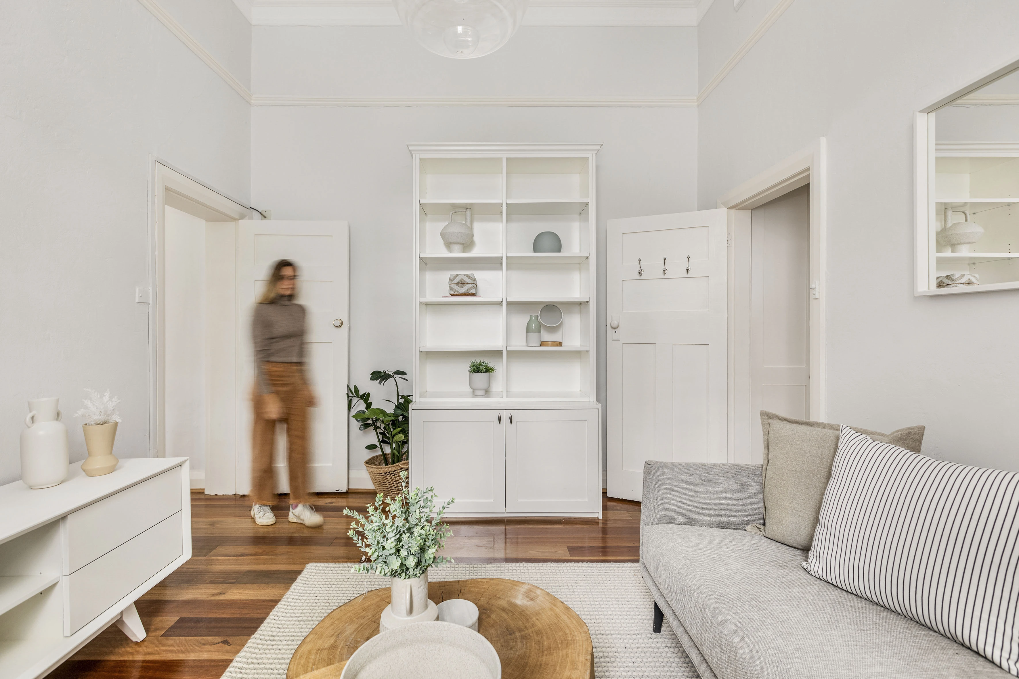 - High ornate ceilings, spotted gum floorboards