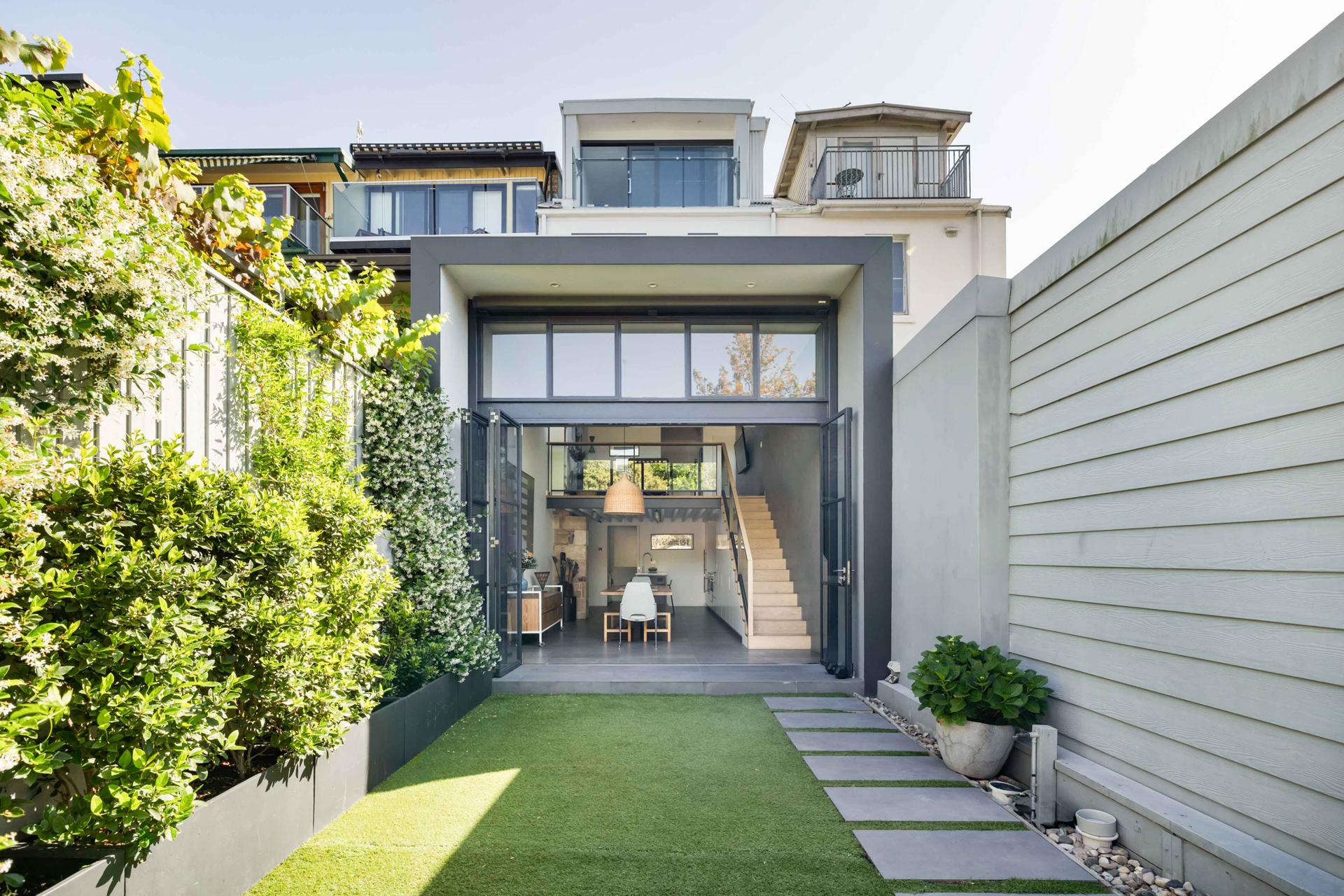 - Concertina doors to leafy green garden