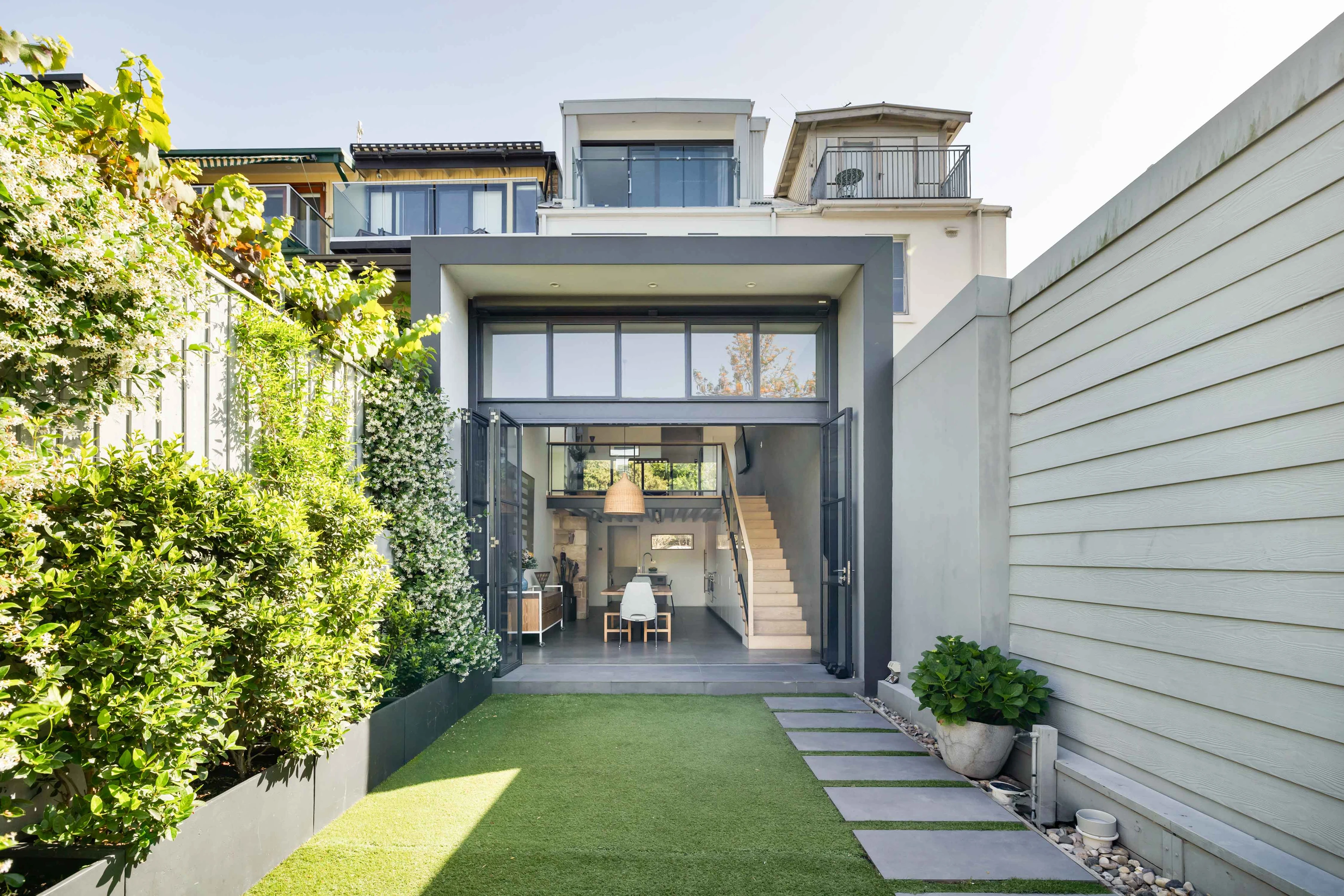 - Concertina doors to leafy green garden