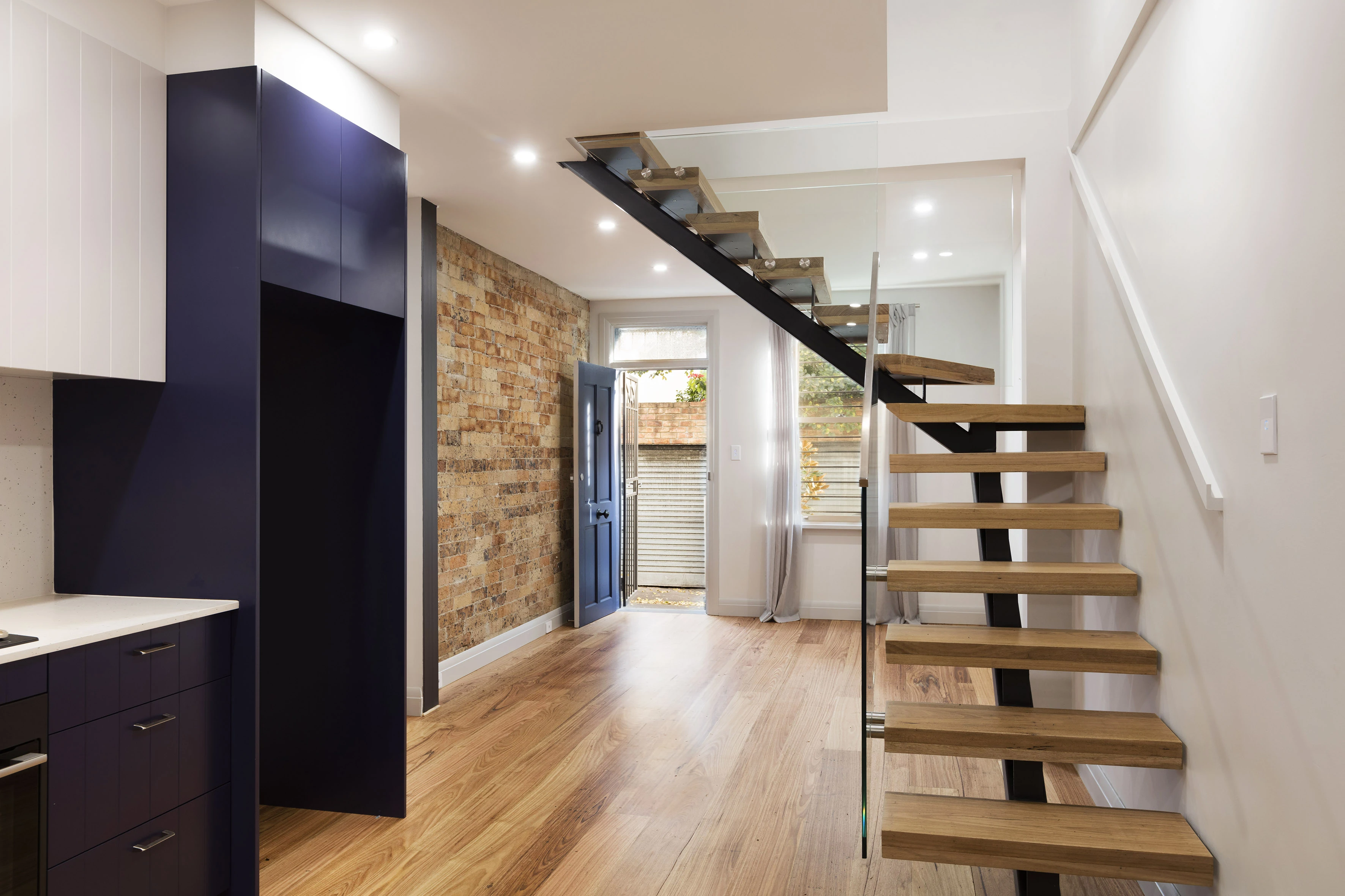 - Exposed brick feature w timber f/boards