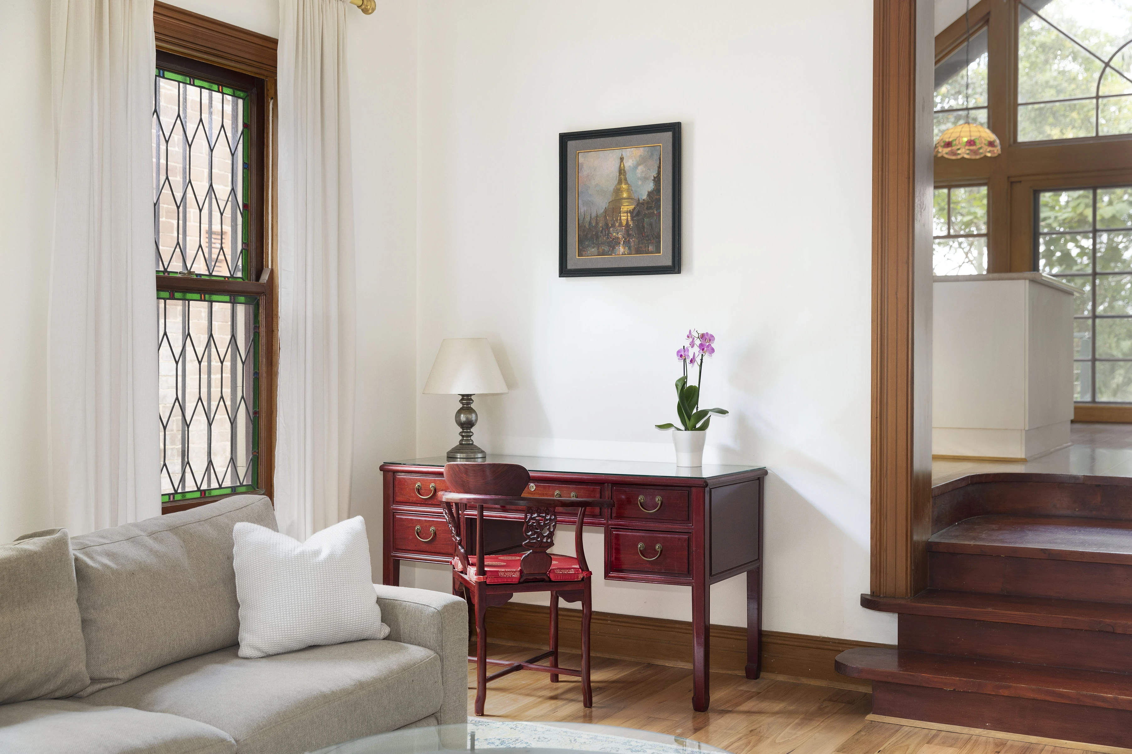 Soaring beamed cathedral ceilings frame a tropical garden overlooking expansive views of Marrickville golf course and the Cooks River. Just a stroll away from the Inner West cafes and transport hubs, it’s hard to imagine a better location in the area than this one. A classic Victorian residence on 575sqm with rear access, it's a versatile family home.