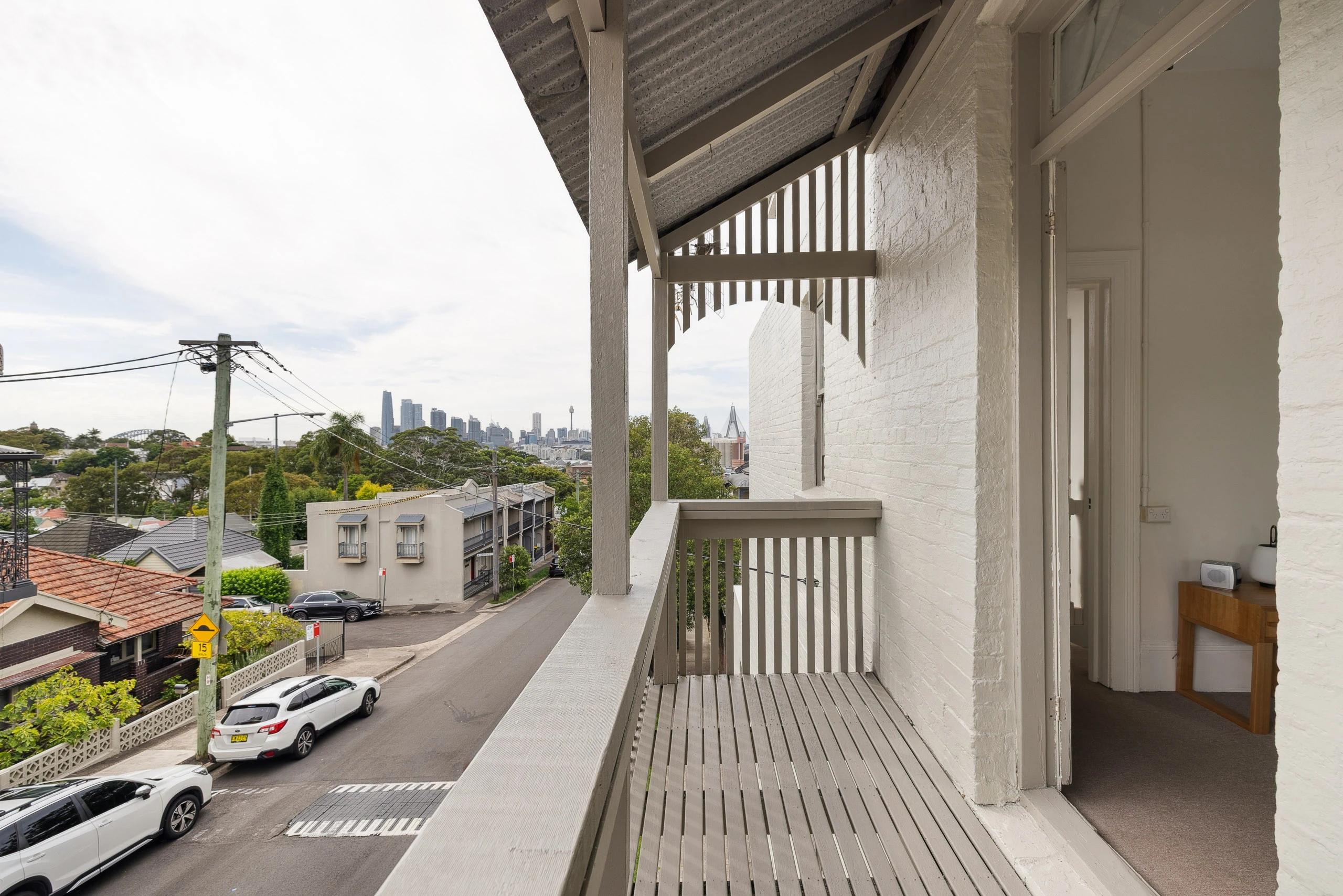 Occupying a commanding corner position with direct secondary street access, this character-filled terrace combines panoramic city views with rare scope to further enhance and capitalise. Elevated to capture sweeping vistas across the CBD skyline, Harbour Bridge and Anzac Bridge, the home is wrapped in oversized windows and French doors that open to a balcony embracing the outlook from multiple angles. Beyond its immediate charm and generous proportions, the property’s standout feature is its valuable rear land with direct road access from the side street. With the installation of a crossover (subject to approvals), there is clear potential to introduce off-street parking, construct a garage with studio above as previously approved (lapsed), or create a flexible workspace or guest retreat. Comfortable today and compelling for tomorrow, this is a rare opportunity to secure a corner terrace with views, land and genuine vehicle access with studio potential - moments from Rozelle Village and rapid CBD transport.