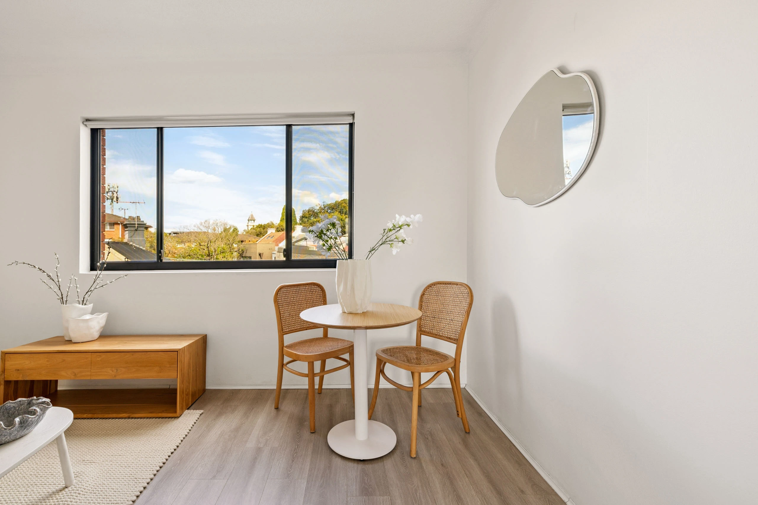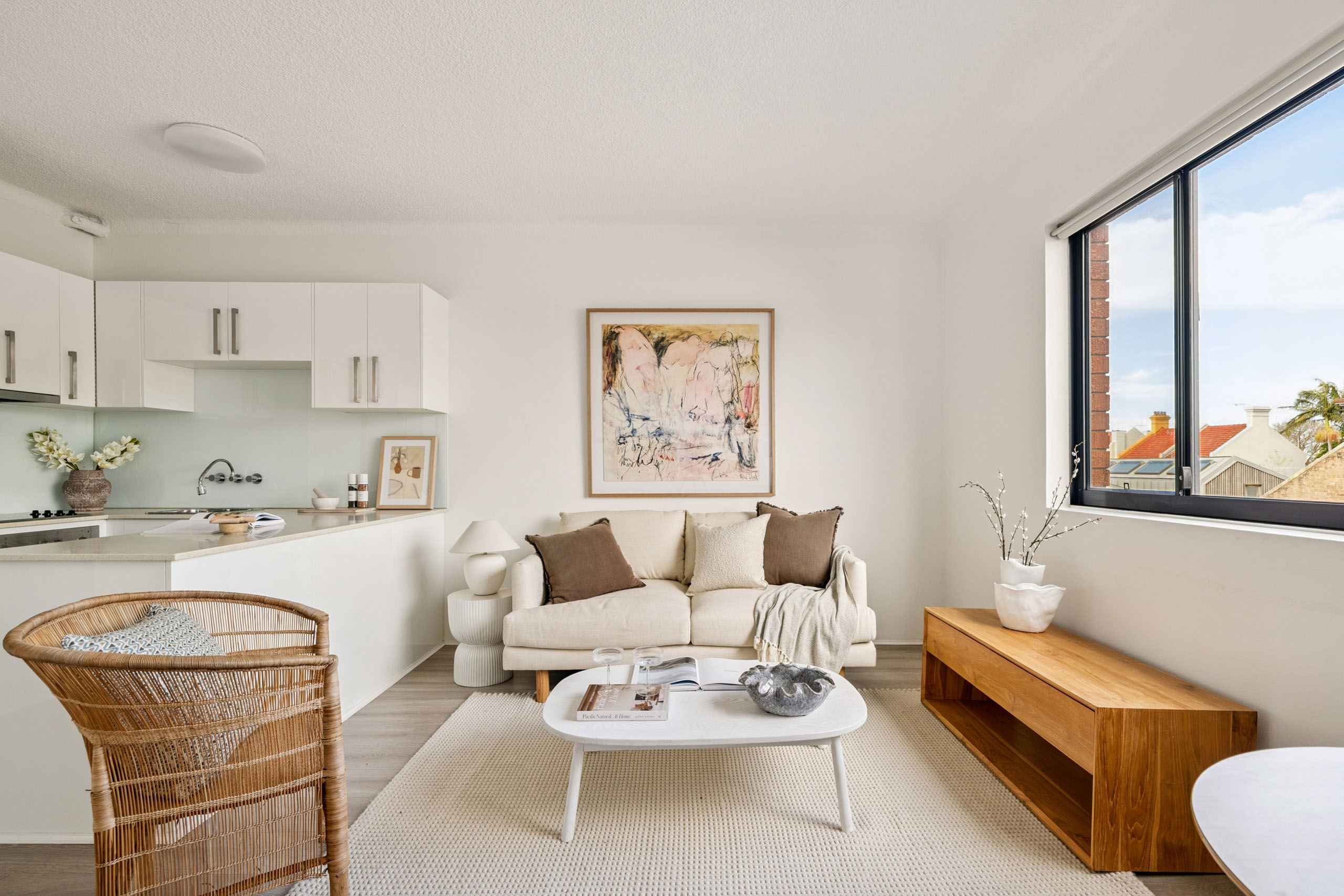 An elevated renoavted home with sweeping views and parking, this residence has wide appeal as home/lifestyle/investment, conveniently located in the heart of Balmain's village neighbourhood. Modern comfort, elevated privacy and great light in a prime location and a tightly held, classic low-rise building.