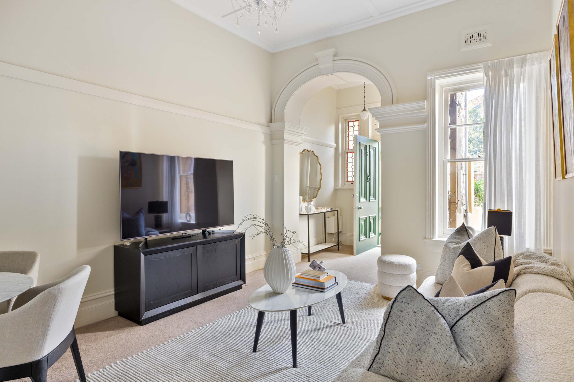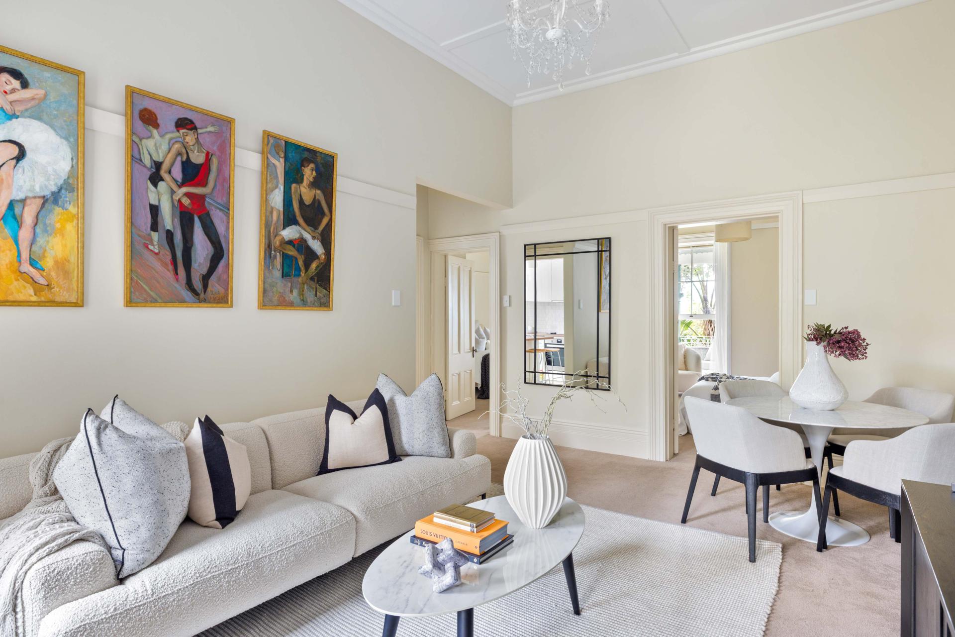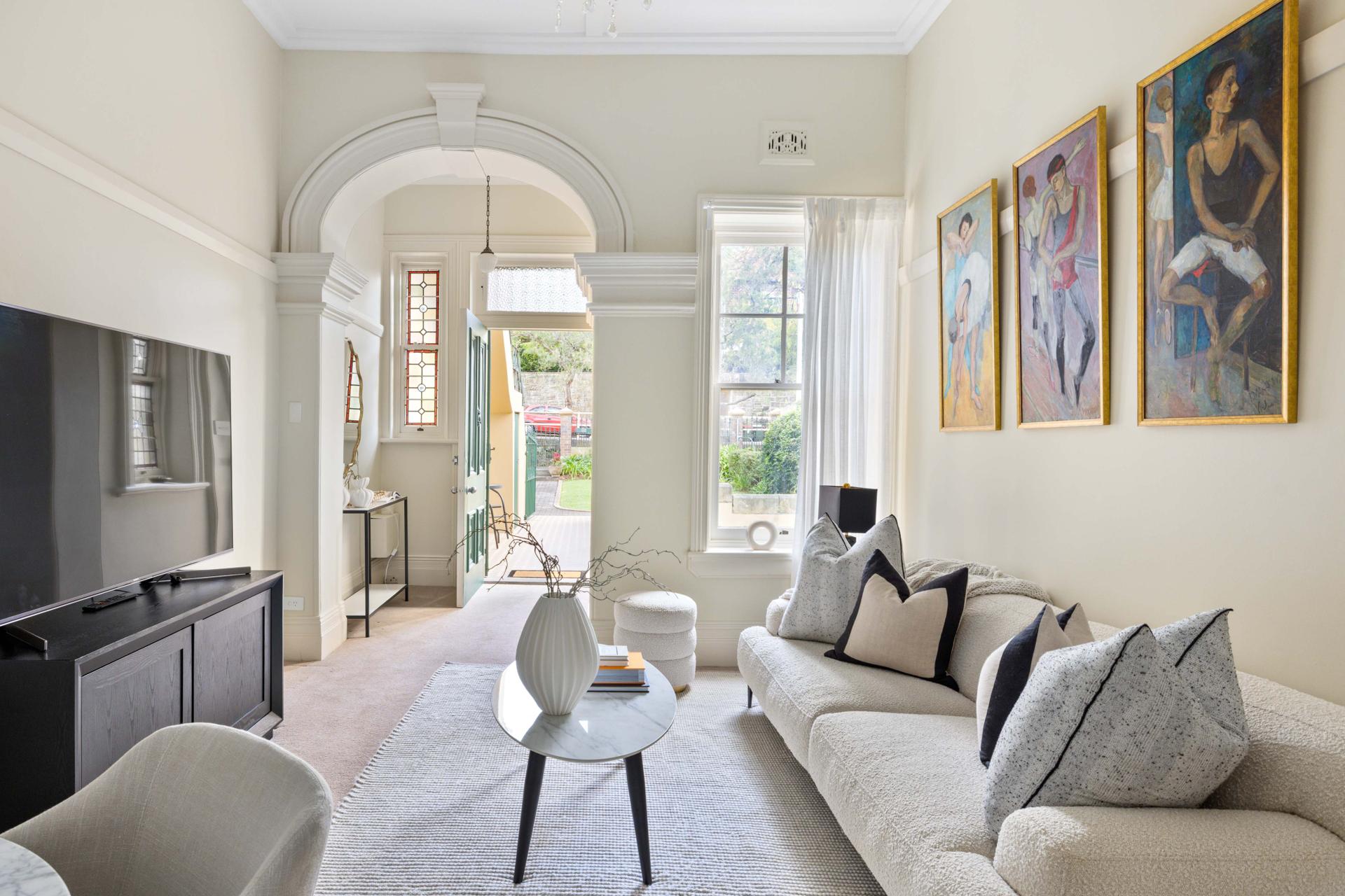 Tucked away in a heritage sandstone building dating to 1887, this elegant apartment is one of only 6 in its block and makes an accessible entry, downsizer or investment to the Lower North Shore. Retaining many grand Victorian details and high ceilings, it opens to a balcony with views of North Sydney and the city, with Harbour Bridge glimpses. Set far back from the street behind generous and gated garden grounds, it is a piece of harbourside history and comfortable, low-maintenance home in easy reach of the ferry and buses, foreshore parks, Hayes Street Beach, Military Road village and Neutral Bay Club.