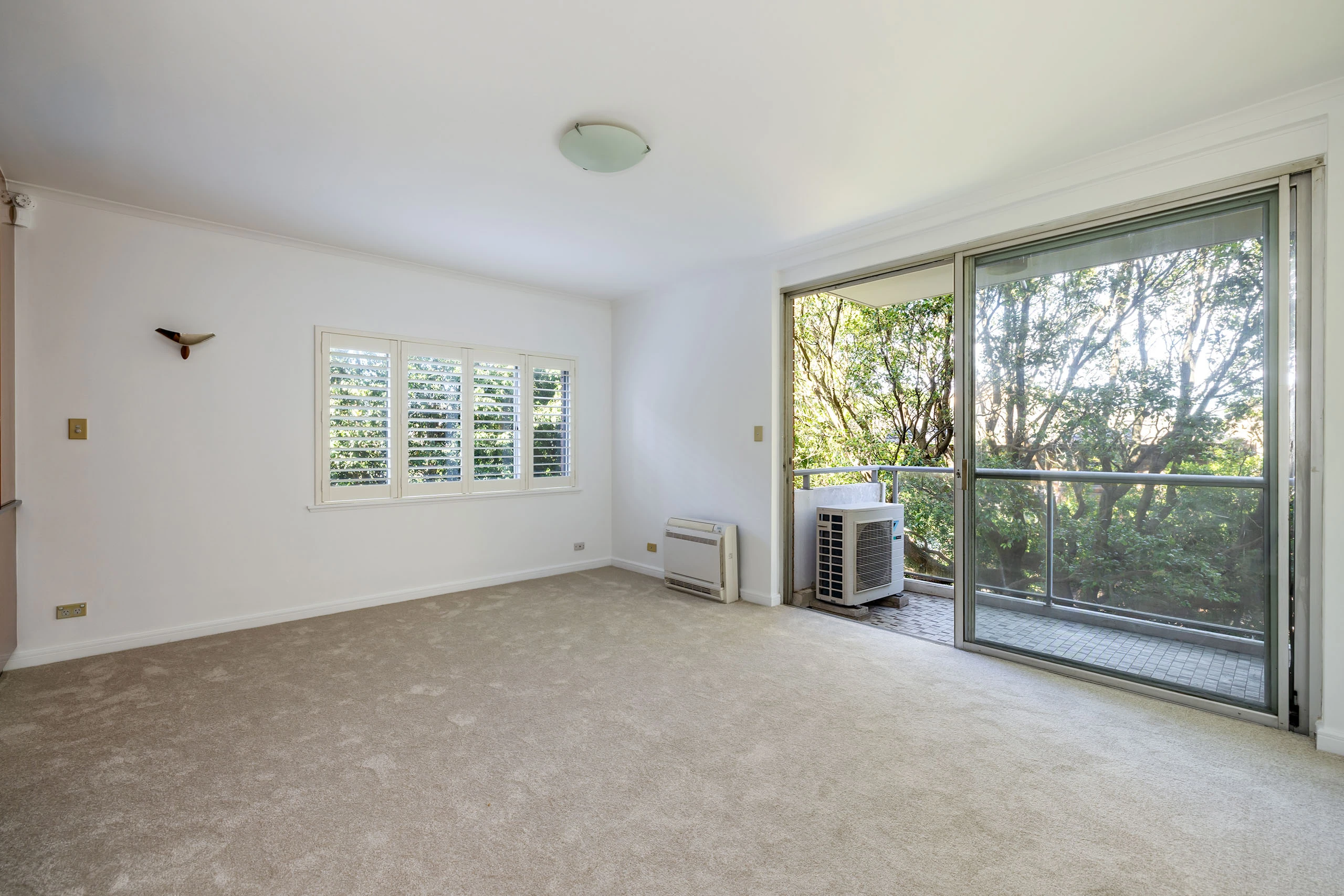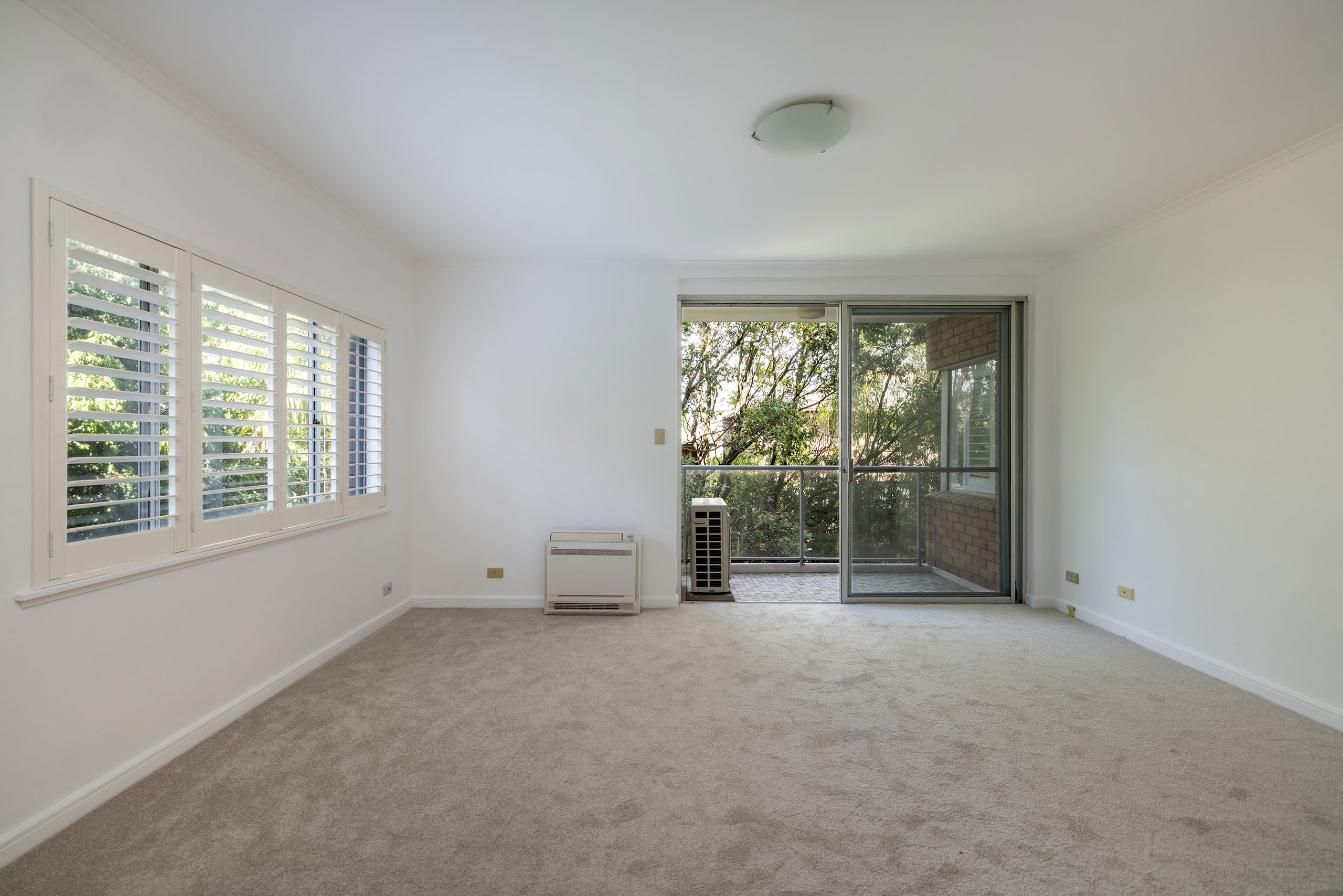 - High ceilings, plantation shutters
