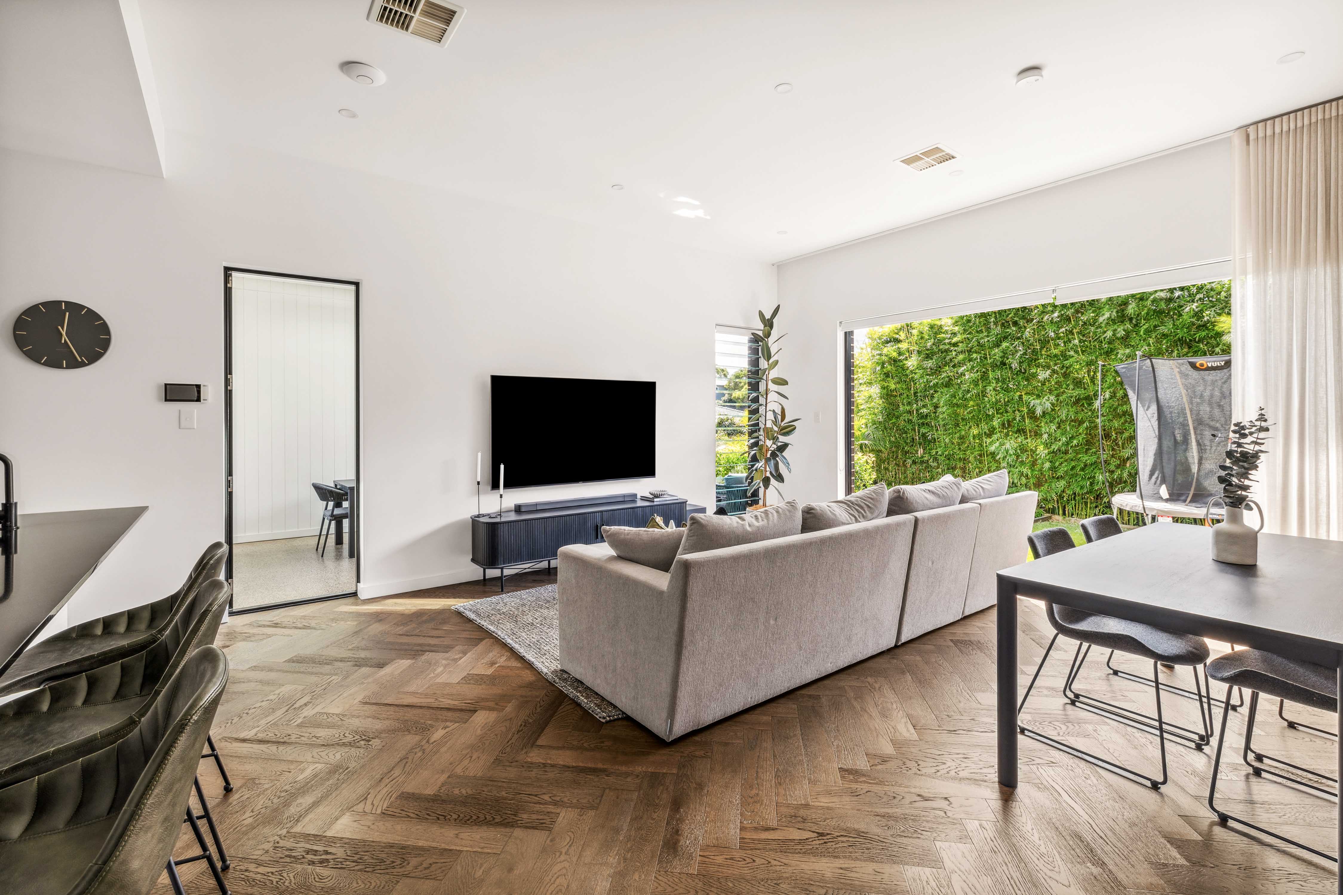 A contemporary duplex with an indoor/outdoor design and private backyard setting, immaculately presented throughout.