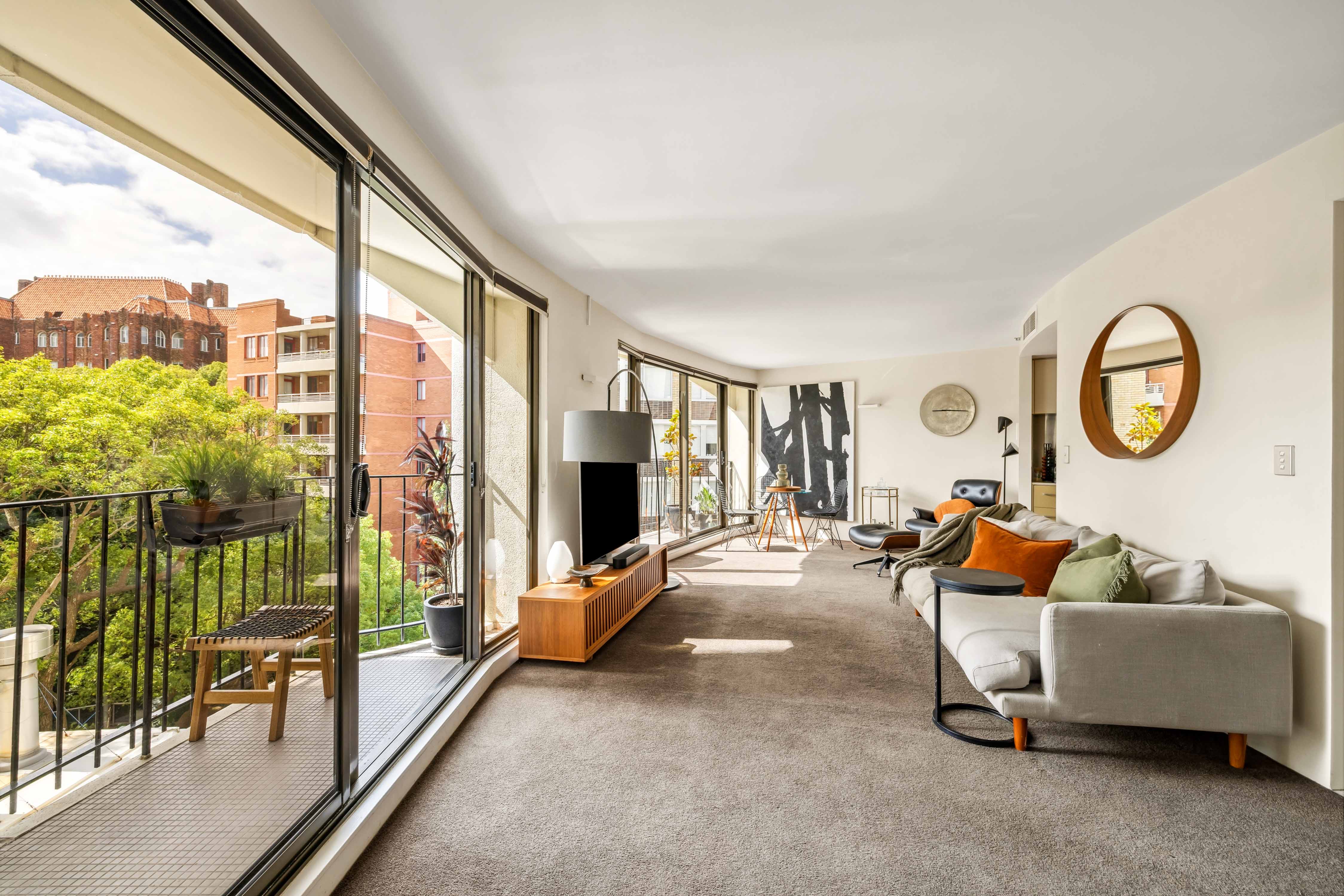 Within the prestigious ‘Gazebo’ tower, this oversized one-bedroom apartment opens to 3 separate north-facing balconies bringing treetop views, natural light and air throughout. Enjoy hotel-style living and design cred in one of the Sydney’s most recognisable architectural landmarks, with in-building resort-style facilities, fashionable dining, shops and transport virtually at your doorstep, and the harbour and CBD just beyond.