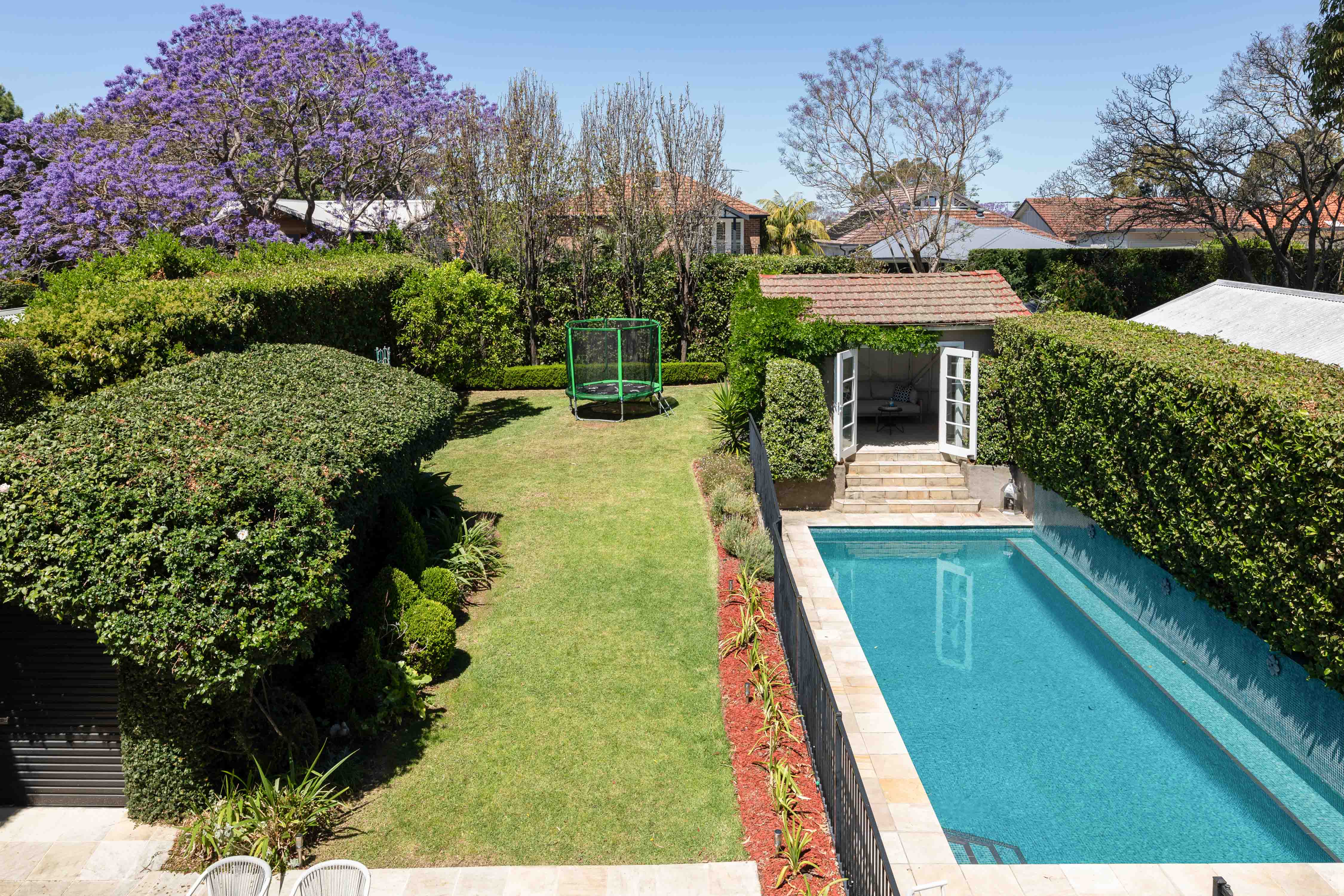 This oversized family house shines with flawless details and timeless quality. Dream layout w/ spacious open plan living/kitchen & dining room that flows to the private rear gardens, pool and cabana. A classic family home, close to both Hunters Hill & Gladesville hubs, top schools and Victoria Road transport links.