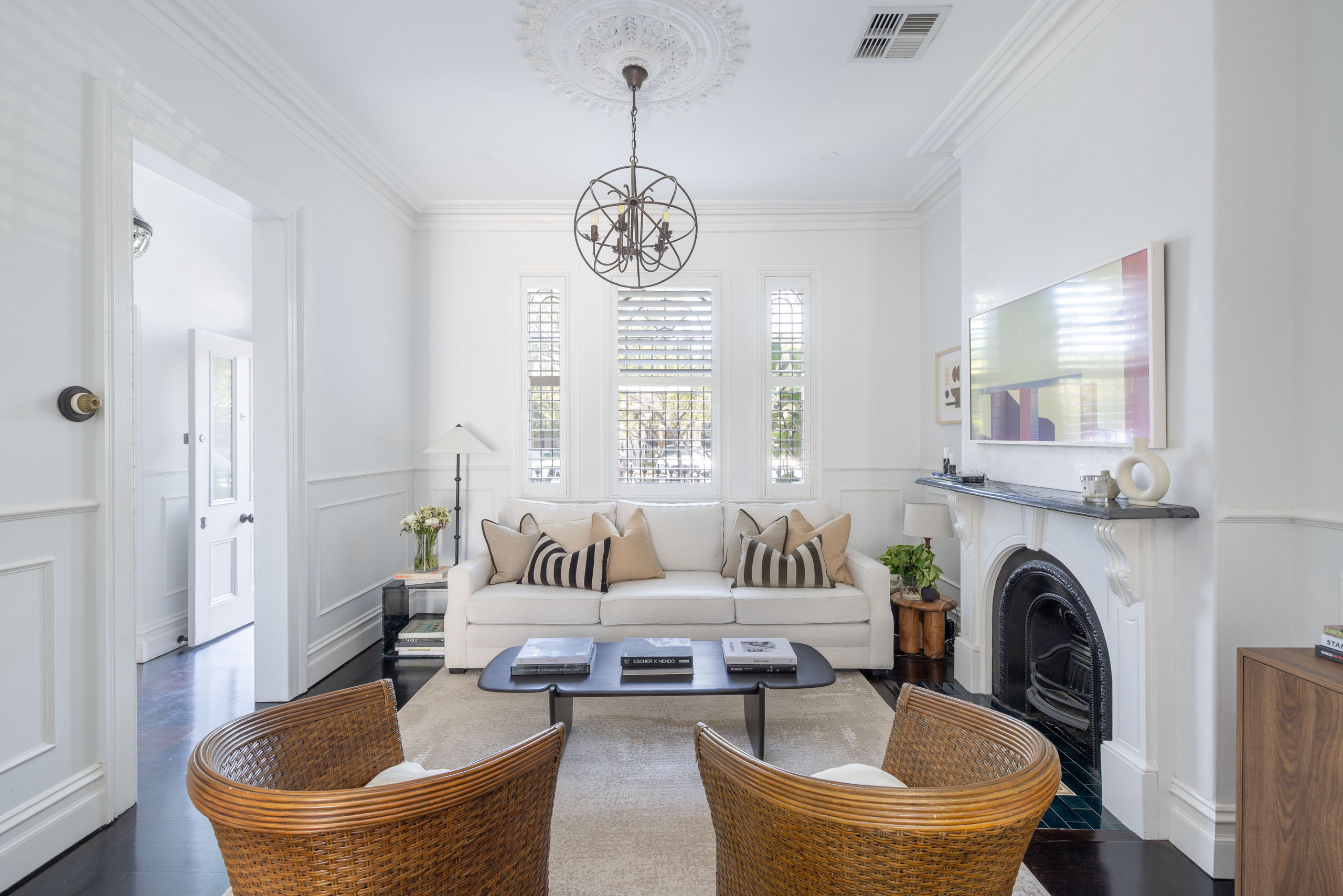 In one of Newtown’s most distinguished wide, tree-lined streets, this newly renovated terrace balances timeless period character with an uncompromising designer finish. Grand in scale, with soaring ceilings and original fireplaces, it opens to a sunlit courtyard designed for entertaining. The marble kitchen is a true centrepiece, showcasing Smeg appliances and meticulous attention to detail. Just steps to King Street and within easy reach of schools and Sydney Park, it is a unique home of sophistication and lifestyle appeal.