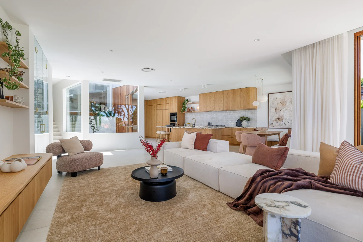 A refined contemporary take on terrace living, this impeccably rebuilt 1880s classic brings high-end sheen, clean architectural lines and effortless indoor/outdoor entertaining to the heart of Paddington village. Perfectly placed between Five Ways and The Intersection’s luxury fashion hub, the north-facing home unfolds across two beautifully resolved levels with oak floors, skylit interiors and a sophisticated material palette of stone, timber and tailored joinery. At once polished and highly liveable, the home balances heritage presence with contemporary ease, just moments from RHW Park, Oxford Street and the CBD.