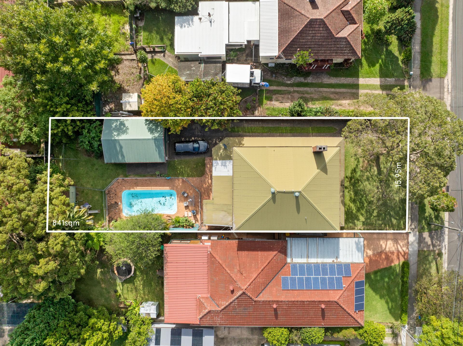 - 841sqm block, 15.95m wide frontage