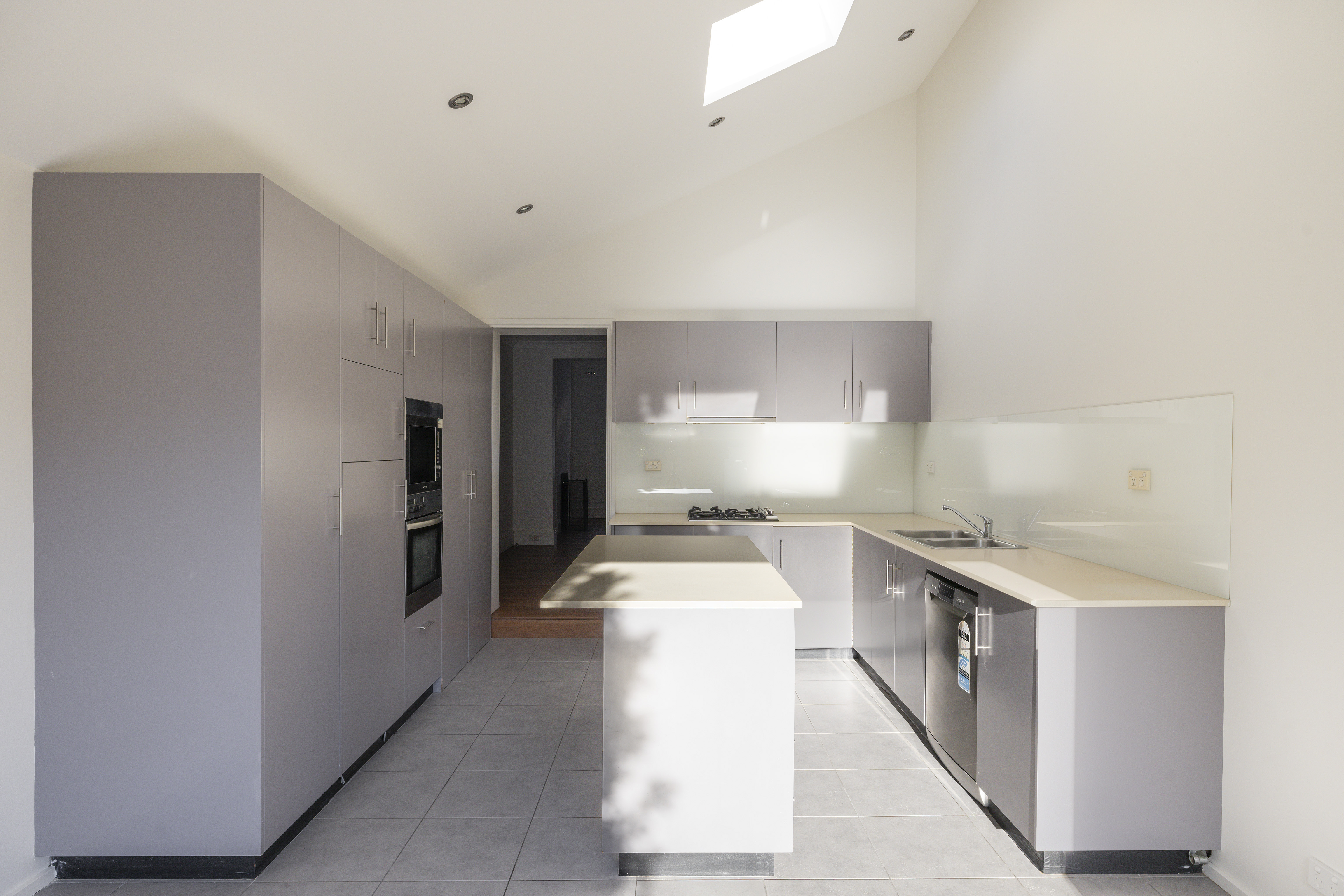 - Sky-lit stone kitchen, gas cooking
