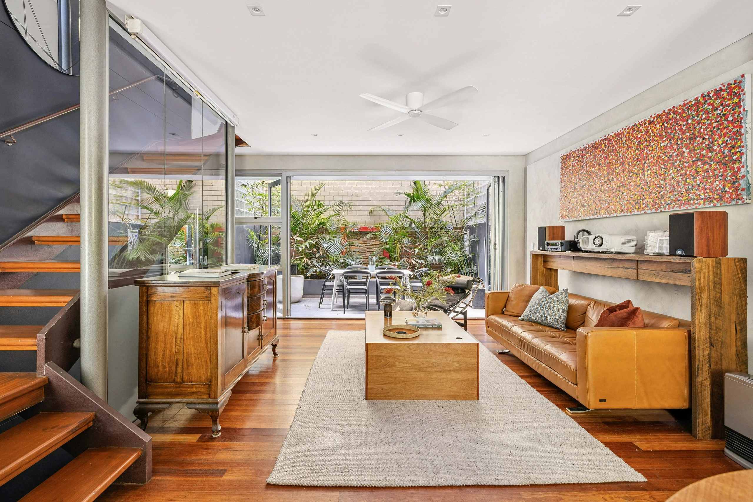 - Spotted gum floors, ceiling fans, air con