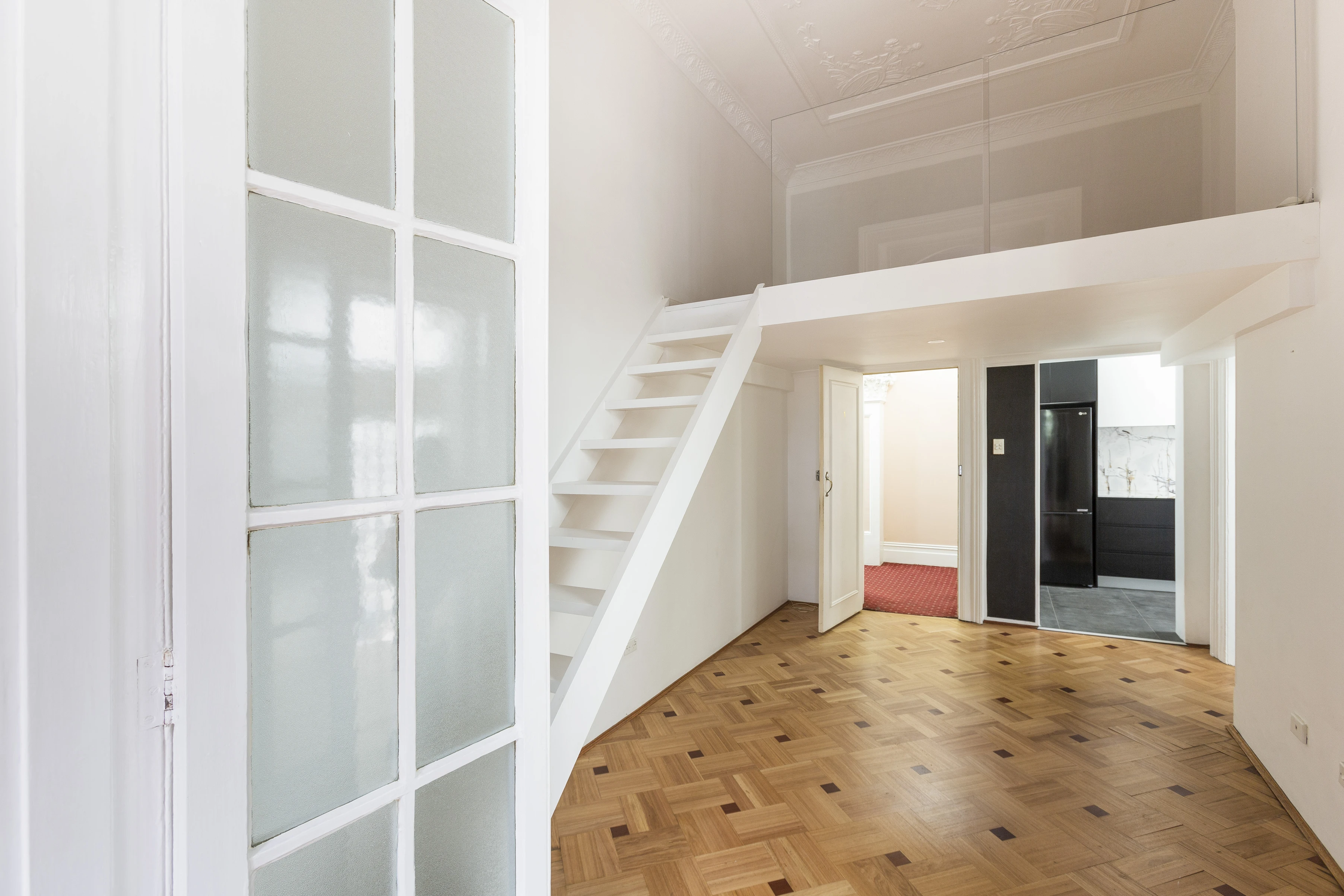 - Separate living spaces, parquet floors