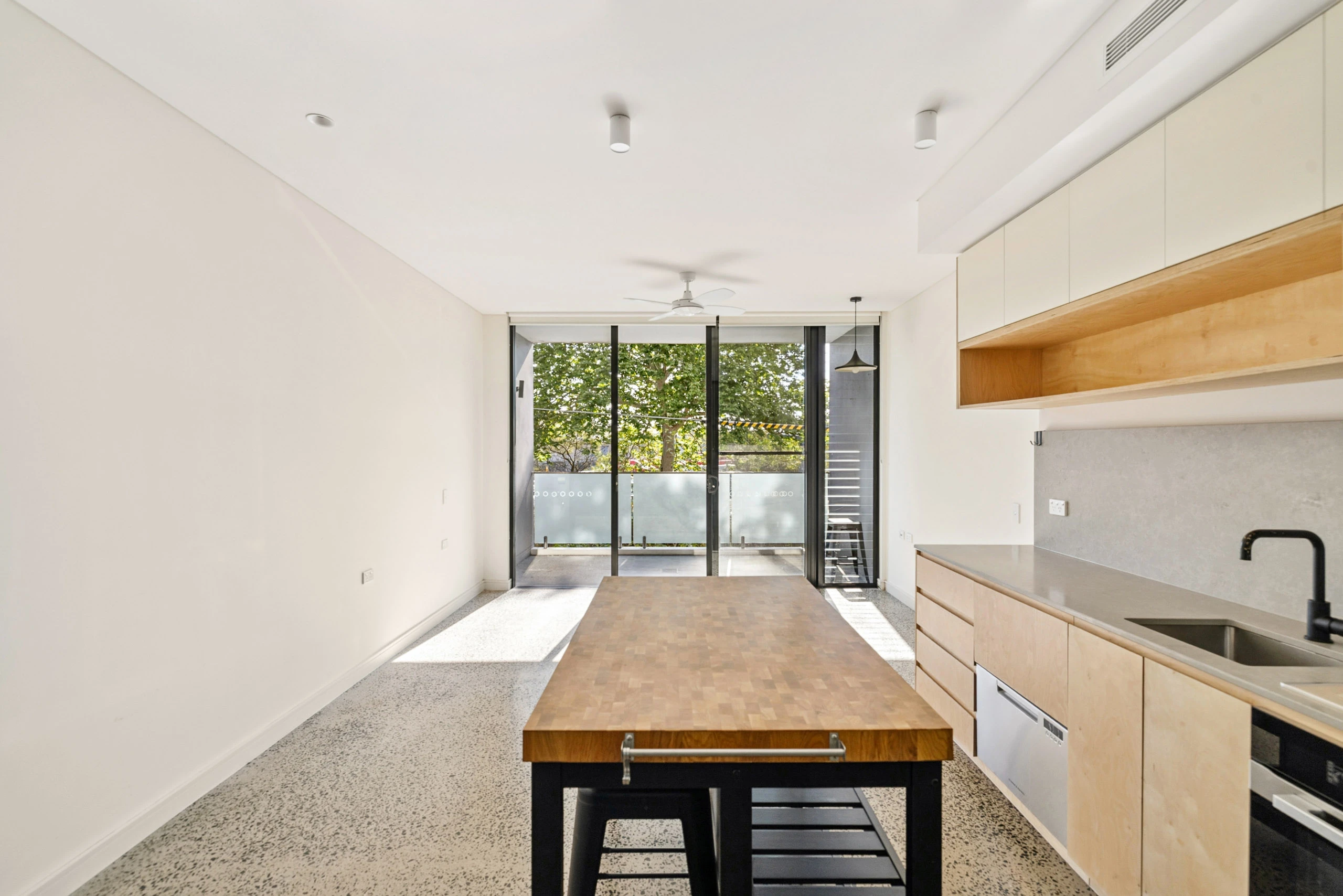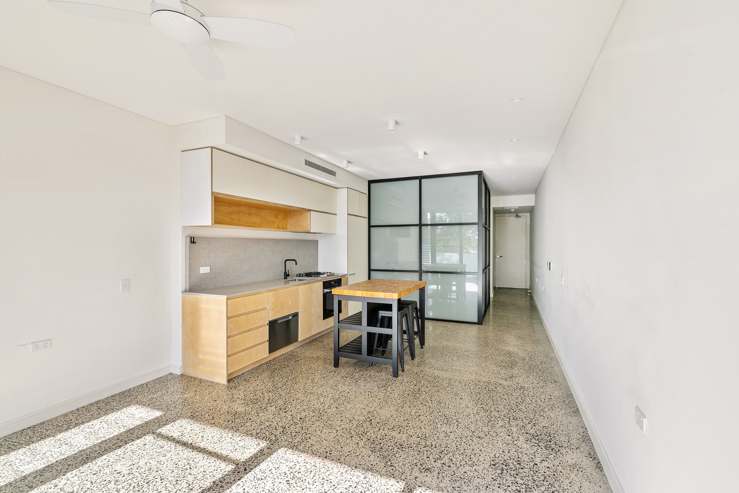 - Polished concrete floors throughout
