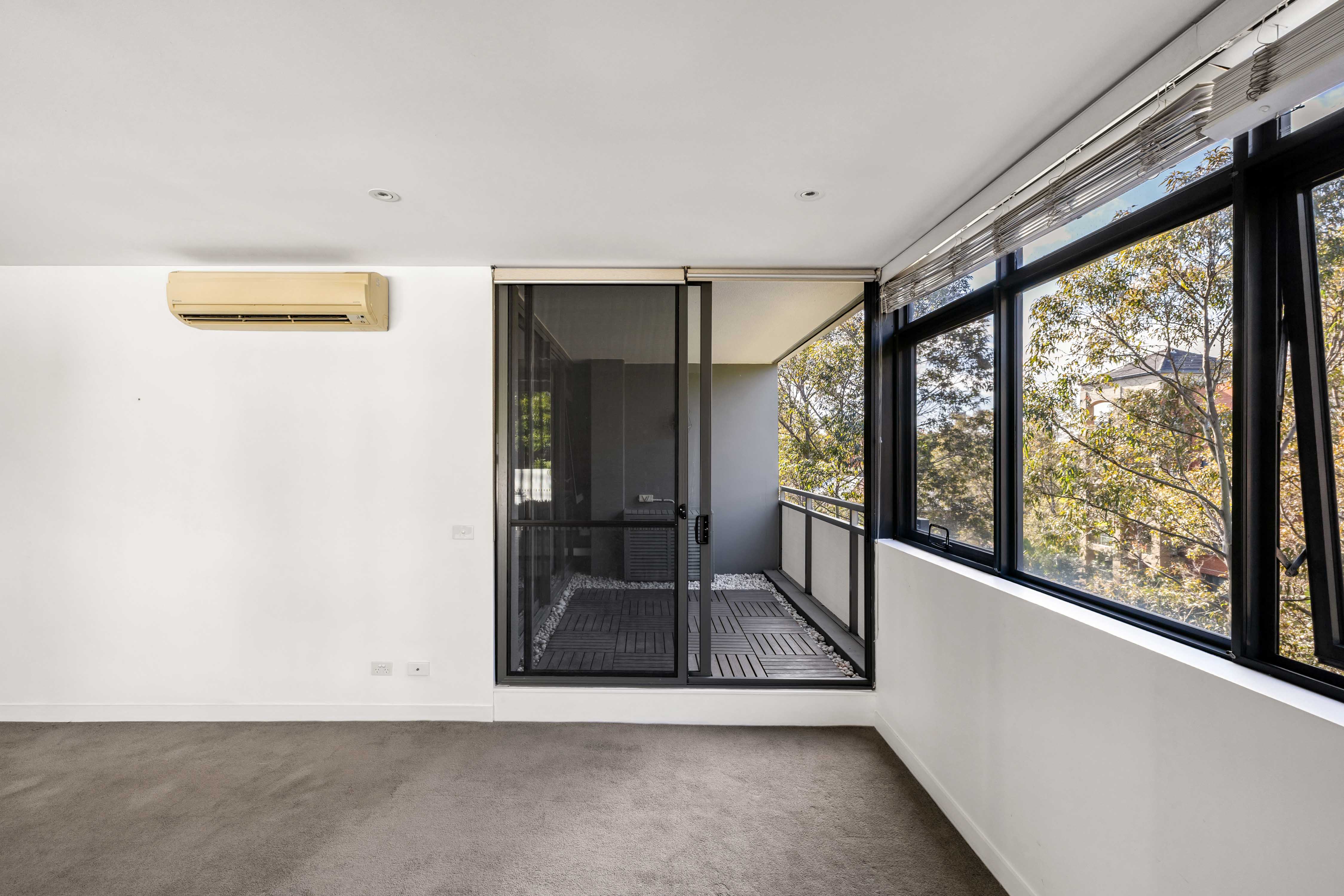- Bedroom with built-ins and balcony access