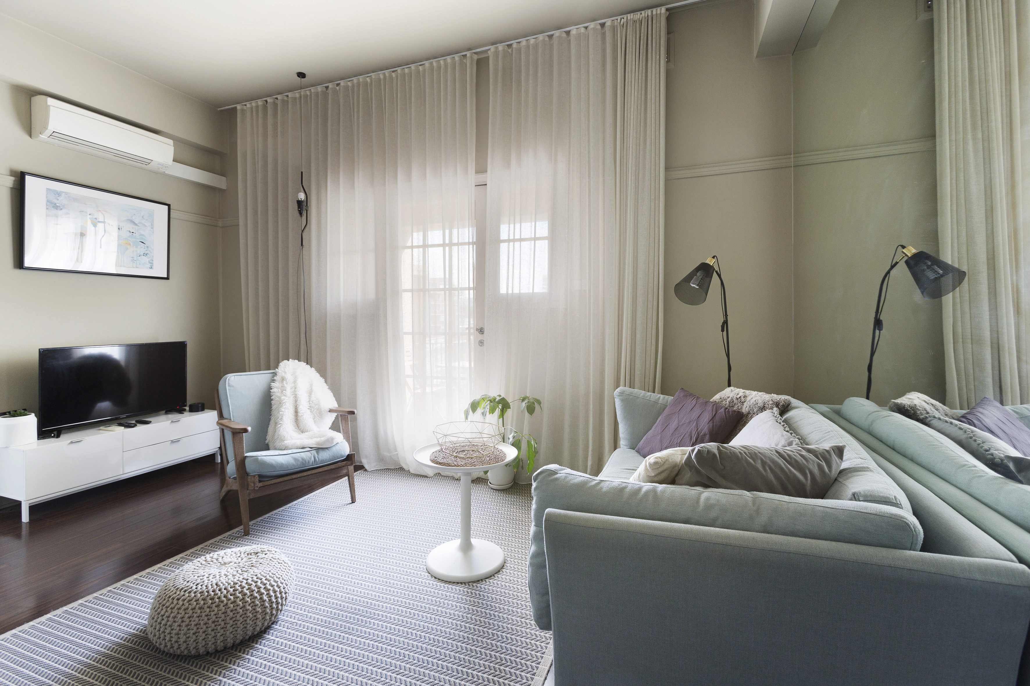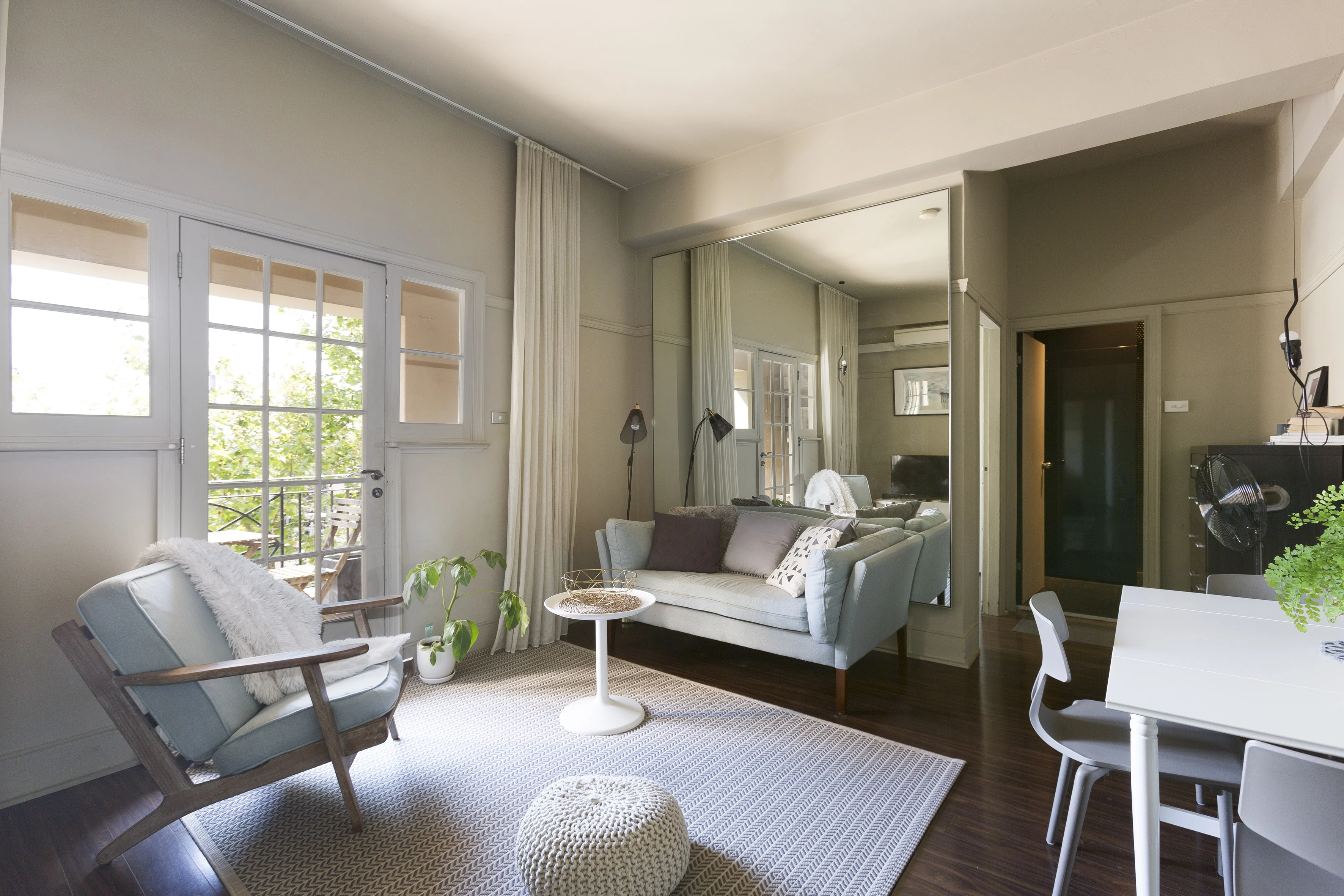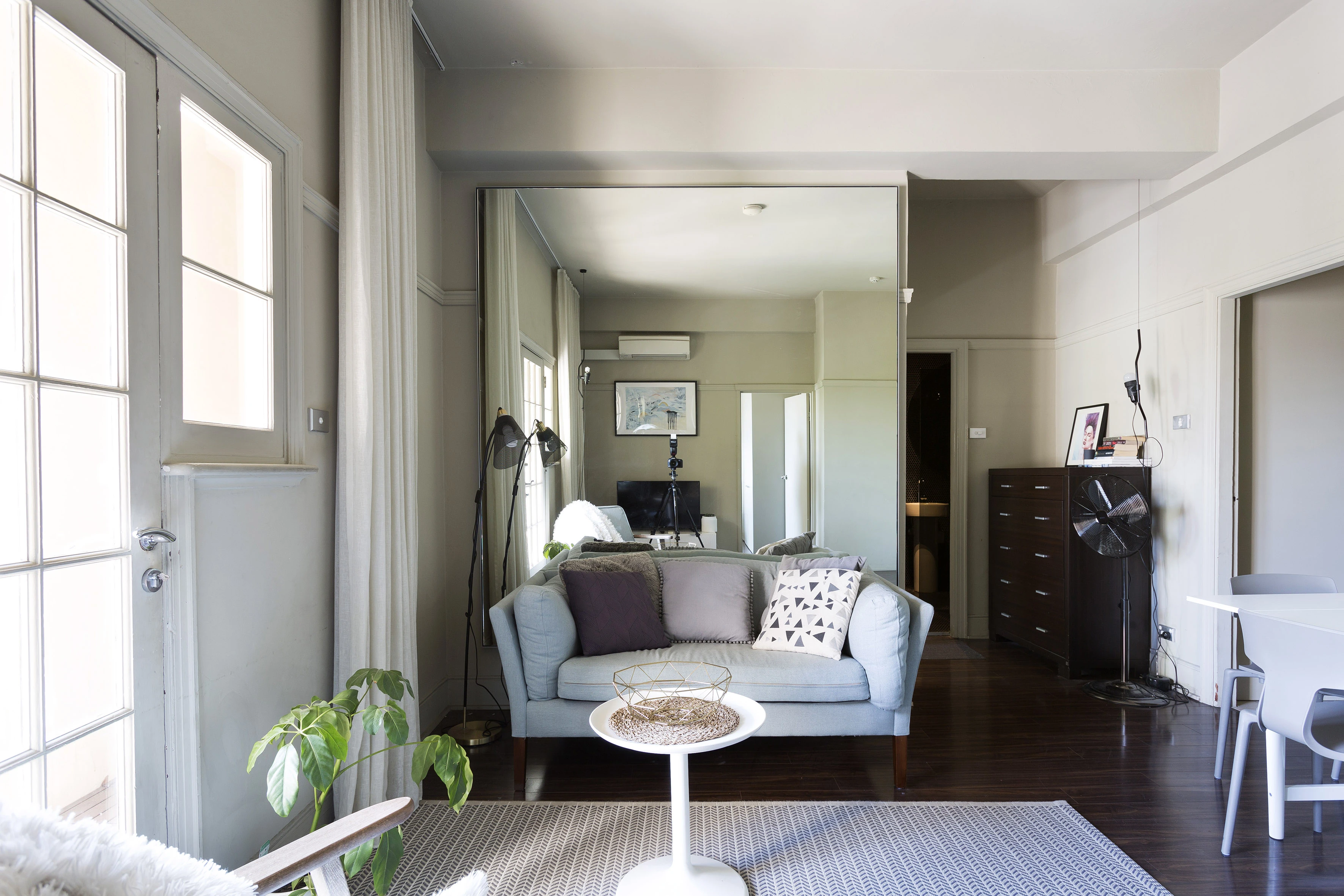- Light filled interiors, dark floating floors