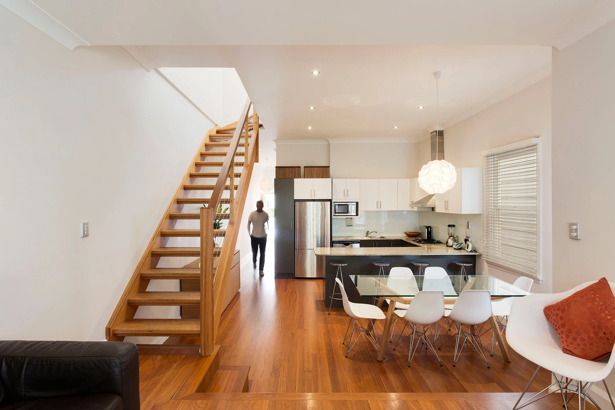 A renovated open-plan design, this cottage connects living and outdoor areas with clean modern lines.