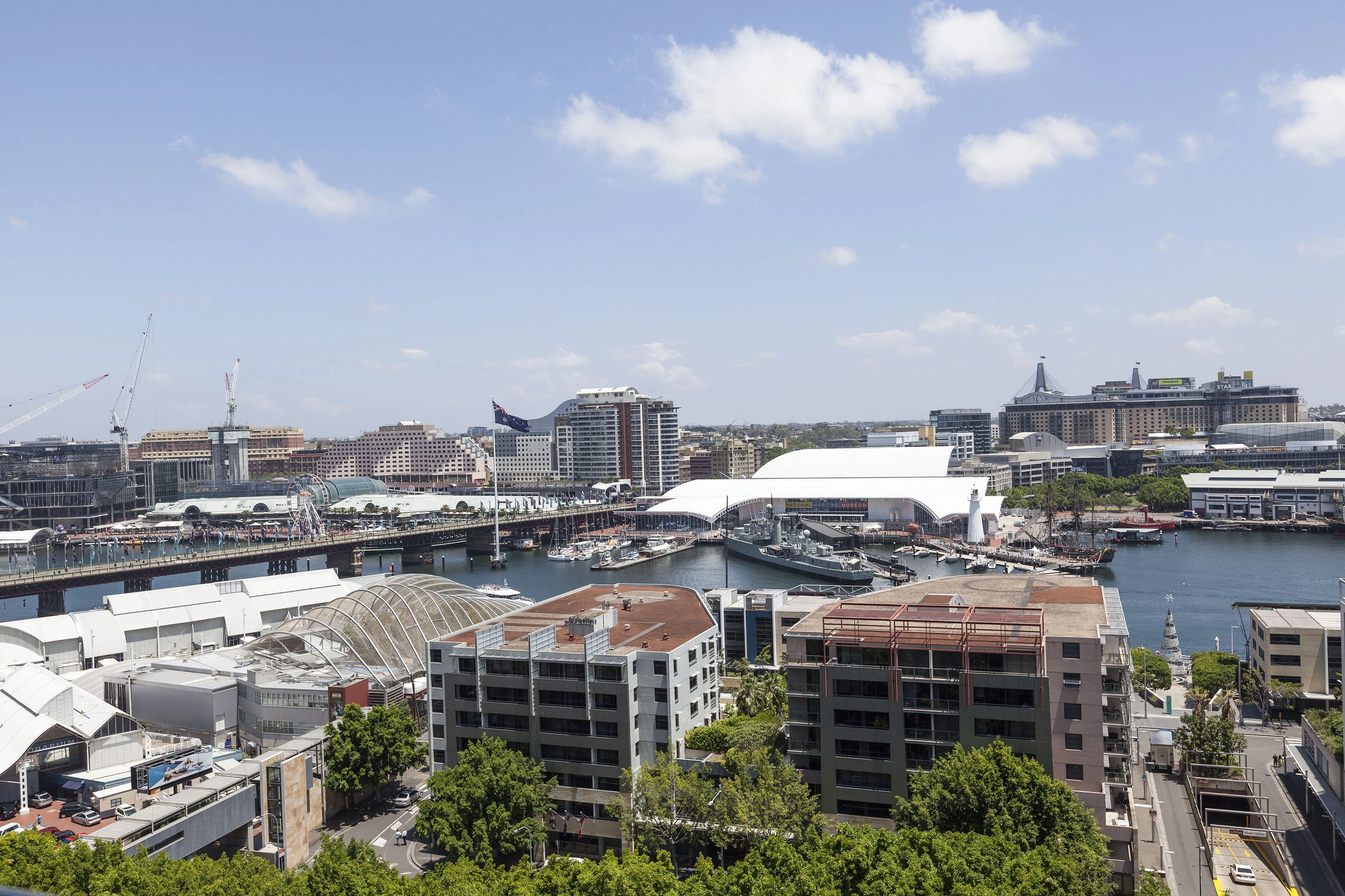 - Long views of Darling Harbour