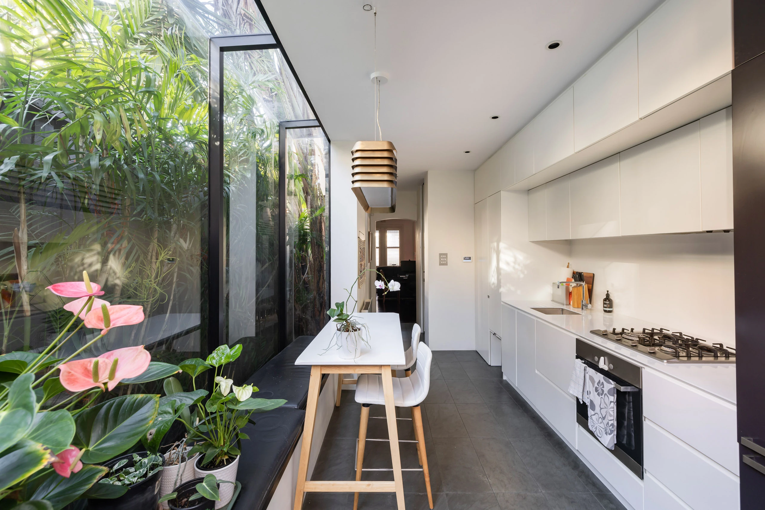 - Eat-in kitchen, garden-view banquette