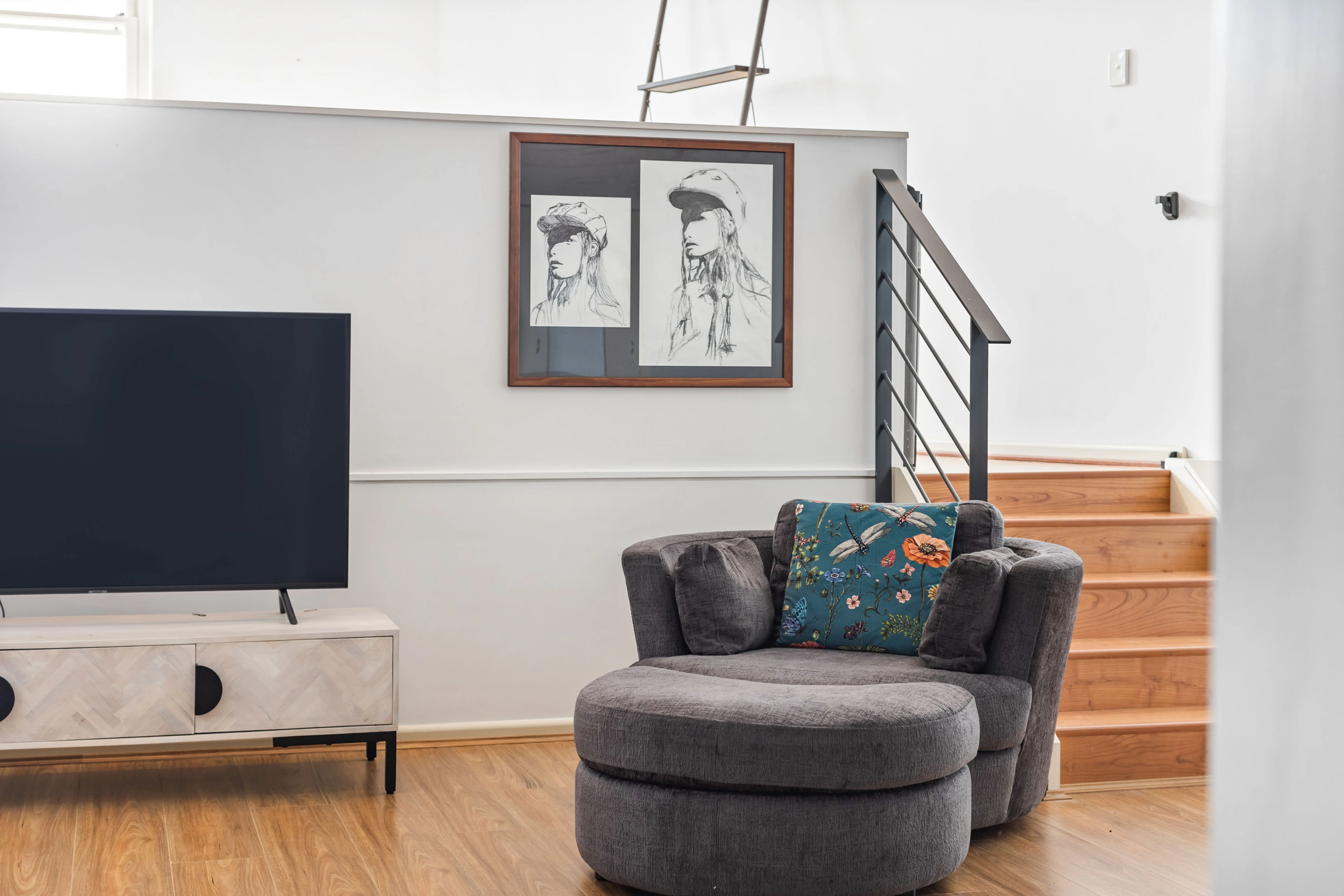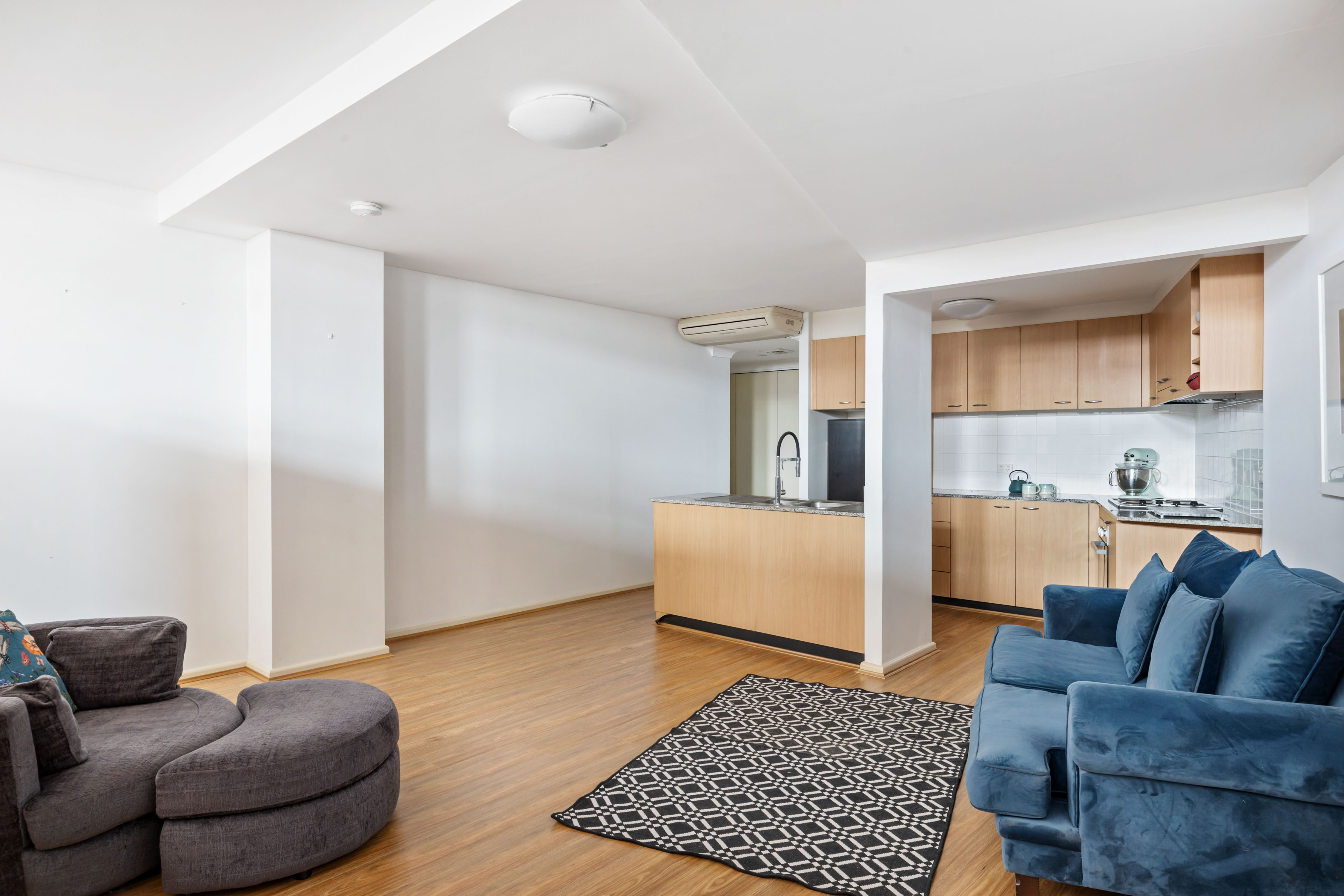 - Open-plan living/dine with timber floors